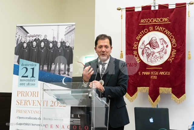 La Prioranza 2022, in tempi di pandemia, ha saputo tenere alto con atti concreti lo spirito della solidarietà verso i più deboli, presupposto imprescindibile della grande Festa del Piatto, valori ricordati dal parroco di Santa Maria padre Luca Paraventi. Tra gli altri eventi in programma al Piatto di Sant’Antonio Abate 2022, la partecipazione il 13 dicembre all’udienza speciale del Serafico con Papa Francesco, il 18 dicembre la stipula del Patto di amicizia con la famiglia dei Santantoniari dei Ceri di Gubbio, il 14 gennaio l’apertura della Tavernetta con una cena di solidarietà, il 15 gennaio una rappresentazione artistica. Domenica 16 gennaio dalle 9 la mostra di carrozze storiche in Piazza Garibaldi, il focaraccio alle 17 e l’apertura della Taverna dei Priori al ristorante Biagetti.