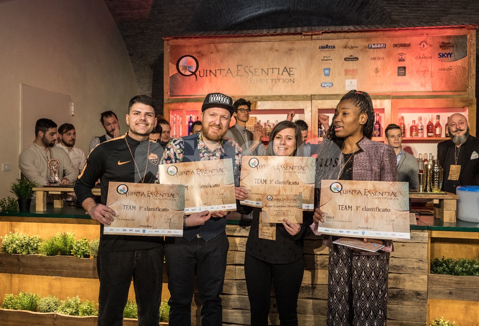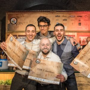 Ad aggiudicarsi la vittoria al Quinta Essentiae Competition 2018, con Master Experience Corsi Planet One del valore di 2.500 euro e la possibilità di un’esperienza la Training Center Lavazza il team n. 4 composto (Andrea Pomo, Natale Palmieri, Dario Cusan e Niccolò Giannelli). Secondo posto sul podio per il team n. 2 formato da Corey Squarzoni, Gino Benvegnu, Mattia Grassia e Mattia Trivellato, per loro una Master Experience Corsi Planet One del valore di 1.800 euro e bar tools firmati Lumian. Si classificano terzi Marguerite El Mbimbey, Riccardo Di Benedetto, Umberto De Cristofaro, e Veronica Costantino del team n.3 che avranno a disposizione delle Master Experience Planet One da 1.000 euro.