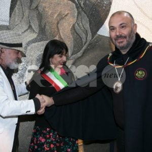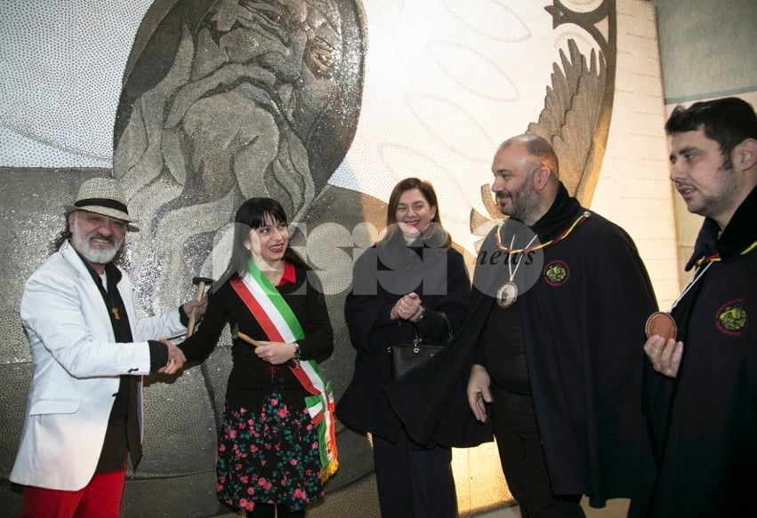 Sono stati il sindaco Stefania Proietti e Saimir Strati a dare l’ultima martellata al ritratto di Sant’Antonio con i chiodi da Guinness. Con il gesto simbolico di oggi, si dà il via alla settimana clou di festeggiamenti del Piatto 2018: la cerimonia si è svolta nel pomeriggio del 15 gennaio. Con questa opera, un omaggio al patrono di Santa Maria degli Angeli e protettore degli animali, i Priori Serventi 2018 e l’artista albanese (che già vanta 10 opere – tutte realizzate con materiali alternativi, dai chicchi di caffè ai tappi di sughero, fino ai pennelli da barba e gli stuzzicadenti – nell’albo dei record), tentano l’accesso al Guinness dei Primati. A vagliare l’opera, un’apposita commissione: la risposta si saprà entro cinque giorni.