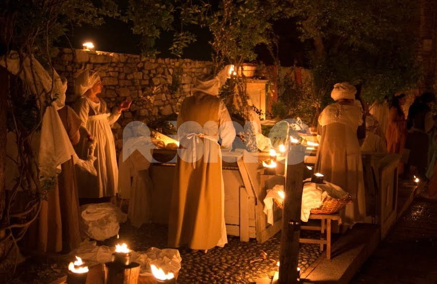 Alle scene di Parte del Calendimaggio 2018, la magia delle rievocazioni medievali nei vicoli di Parte ha avuto come filo conduttore – come sempre nella Festa – l’amore contrastato che alla fine trionfa sempre e quest’anno sia Nobilissima che Magnifica si sono concentrate soprattutto sui ‘mestieri’ – i blu hanno ricostruito tra l’altro gli interni di un candelaro, i rossi uno stoffaio.