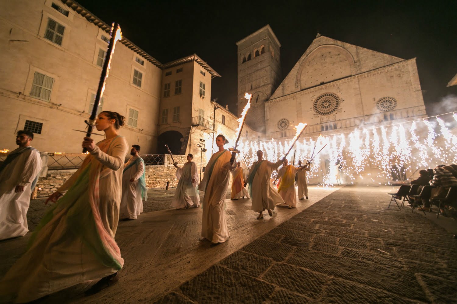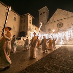 Archiviate le scene, nel terzo giorno di Calendimaggio questa sera (venerdì 4 maggio 2018) le due Parti scenderanno in piazza in con i loro cortei notturni. Nel pomeriggio di oggi, la sfida tra i Tamburini di Parte de Sopra e Parte de Sotto, l’esibizione degli Sbandieratori di Assisi e lo spettacolo del “Gruppo Nuovo Piccolo Teatro”.