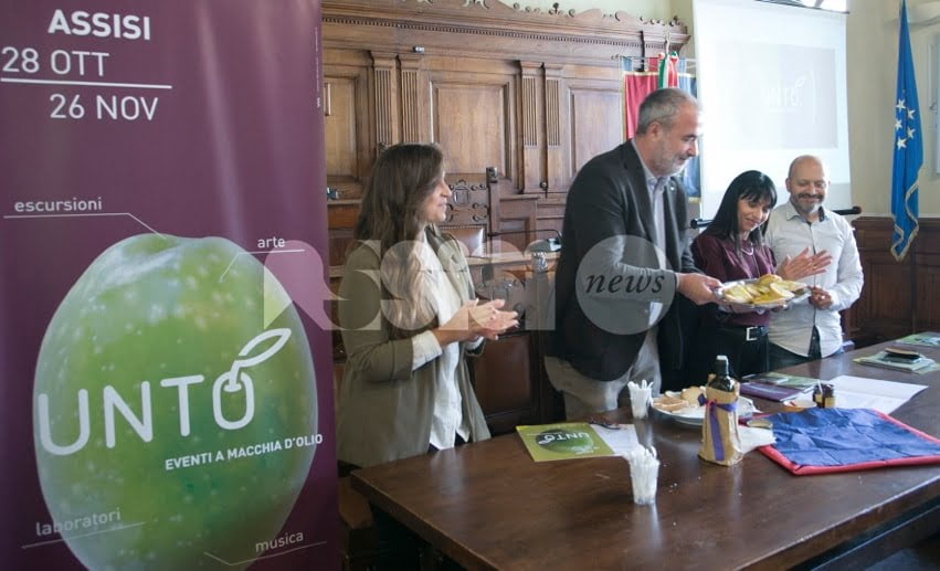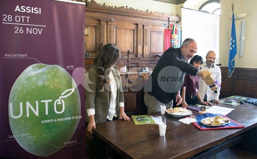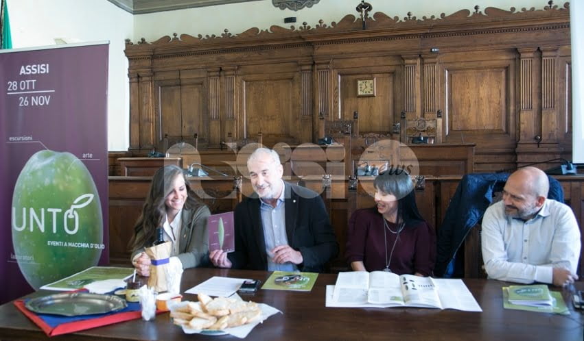 Torna Unto Assisi 2017, iniziativa giunta alla VI edizione, che si inserisce nel cartellone ufficiale di Frantoi Aperti 2017, un evento nazionale che porta in Umbria migliaia di appassionati da tutto il mondo. Un mese di iniziative, anche per i più piccoli, organizzate nel centro storico di Assisi e in tutto il territorio, per mettere in vetrina le eccellenze dei produttori d’olio Dop del territorio, accanto ai prodotti tipici delle nostra tavola come il tartufo, i legumi, i salumi, il vino, prodotti dalle aziende agricole. Un calendario variegato presentato nella Sala del Consiglio di Palazzo dei Priori, ad Assisi, dal sindaco, Stefania Proietti, insieme all’assessore alla Cultura e Turismo, Eugenio Guarducci, e a Paolo Morbidoni, presidente Strada regionale Olio Dop Umbria, co-finanziato dalla Regione Umbria attraverso il PSR 2014-2020 e messo in piedi in collaborazione con le Pro loco e gli imprenditori del territorio