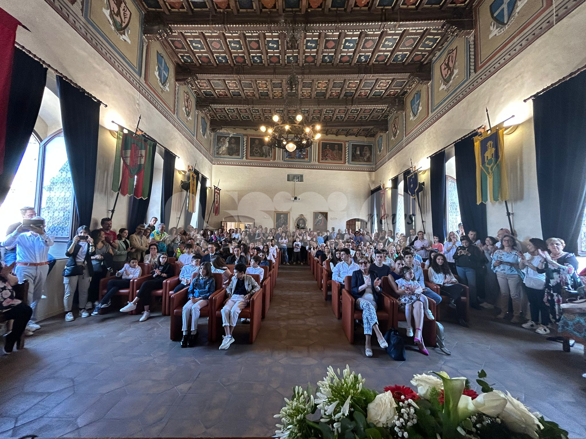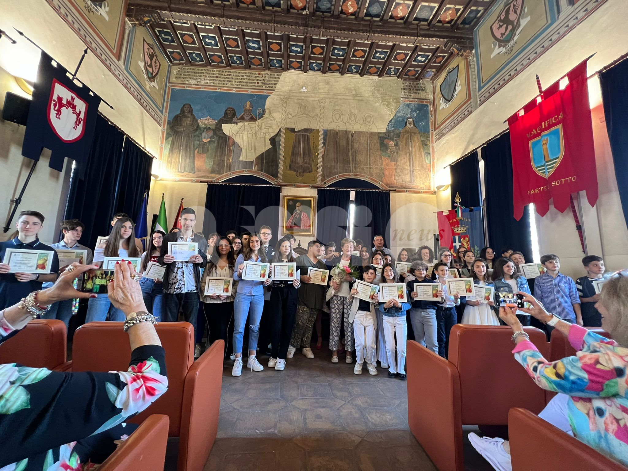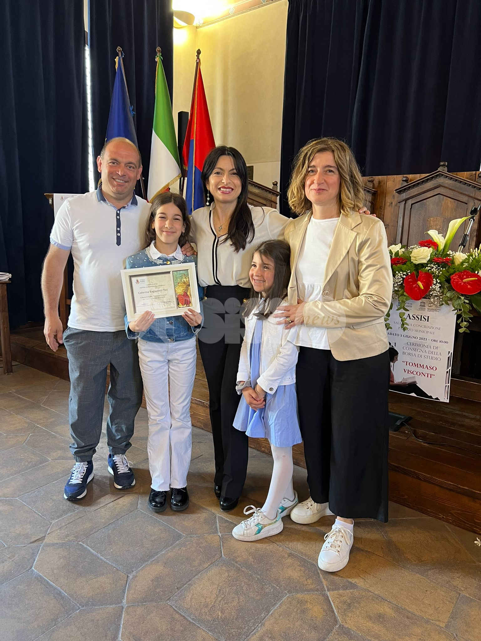 In una Sala della Conciliazione stracolma di gente sono state assegnate le 45 borse di studio intitolate all’ex assessore Tommaso Visconti, erogate dal Comune di Assisi per un valore di 10 mila euro. Un appuntamento importante per gli studenti delle scuole primarie e secondarie di I e II grado e in particolare per i 45 ragazzi e ragazze che si sono distinti non solo per il rendimento scolastico ma anche per la buona capacità di relazione, il sentimento di solidarietà e il rispetto dell’ambiente e delle regole di convivenza democratica. Alla cerimonia di consegna delle borse di studio Visconti 2023 erano presenti la moglie dell’ex assessore Rosella Pampanoni Visconti e la figlia, il sindaco Stefania Proietti, il presidente del consiglio comunale Donatella Casciarri, il consigliere comunale Paola Vitali e il consigliere regionale Stefano Pastorelli.