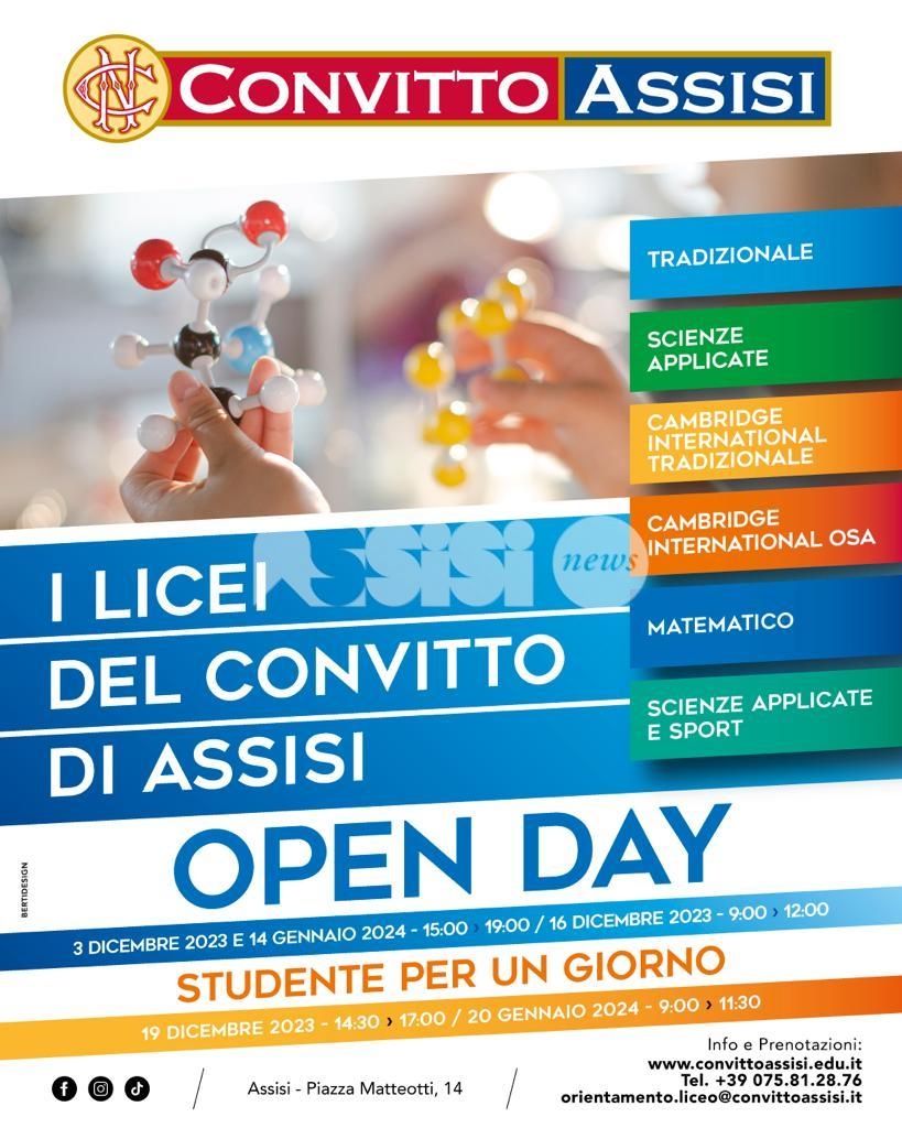 Gli studenti e le studentesse interessate potranno iscriversi alle giornate di orientamento direttamente dal sito internet del Liceo Scientifico di Assisi (link diretto): in concomitanza con i diversi appuntamenti sarà pubblicato sul sito un modulo google per l’iscrizione all’attività prescelta e la selezione del turno di prenotazione. “L’augurio generale – le parole del rettore del Liceo Scientifico annesso al Convitto Nazionale Principe di Napoli – è che i ragazzi possano affrontare la scelta in serenità e con consapevolezza. La raccomandazione che, da Rettore, mi sento di fare a questi ragazzi è quella di partecipare alle nostre giornate orientative per fare esperienza diretta non solo della qualità degli insegnamenti, dei nostri docenti, della vastità dell’offerta formativa, della unicità dei servizi (penso alla mensa, al convitto e al semiconvitto), ma anche del calore e dell’accoglienza che caratterizza la nostra comunità e, anzi, ne è uno dei maggiori tratti distintivi”.