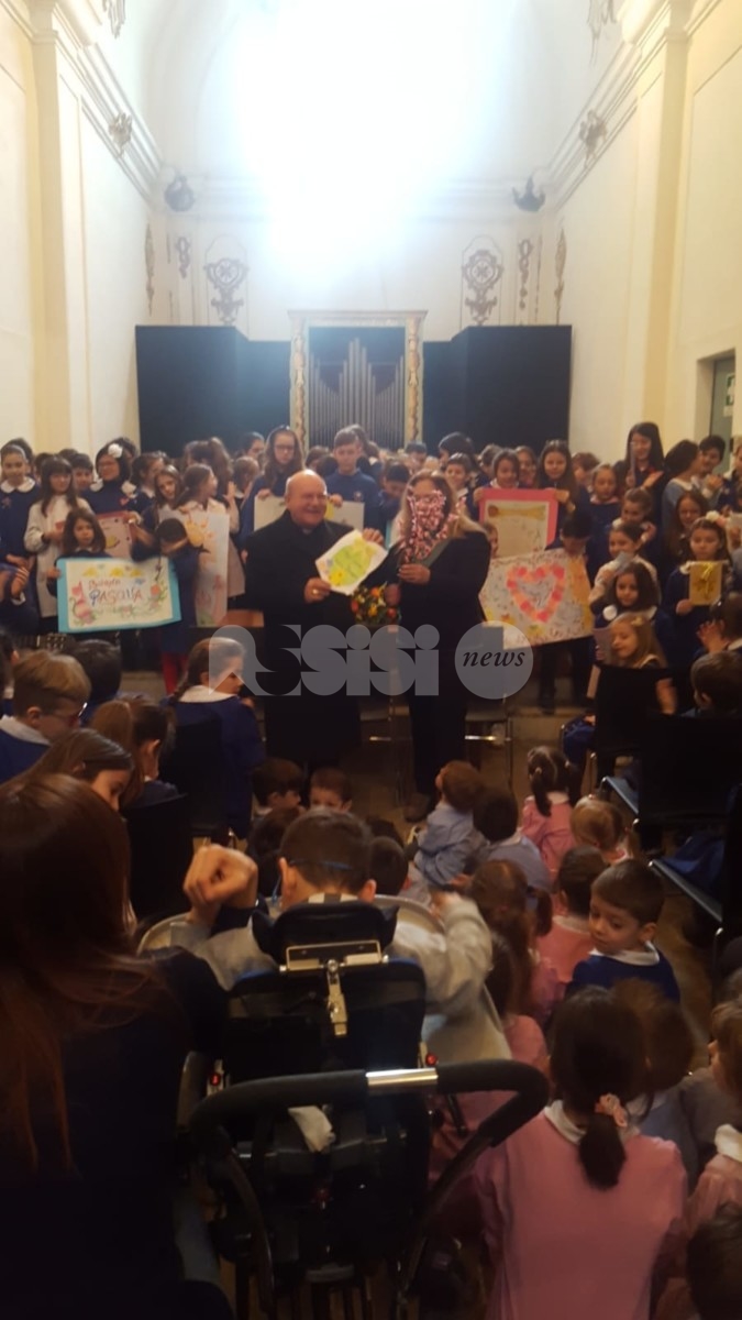 Un’emozionante mattinata, quella di giovedì 11 aprile quando il Vescovo di Assisi Sua Eccellenza Mons. Domenico Sorrentino, ha fatto visita alla Scuola Primaria Sant’Antonio accompagnato dal parroco della chiesa Santa Maria Maggiore, Don Carlos Acacio Gonçalves Ferreira.