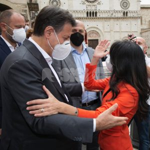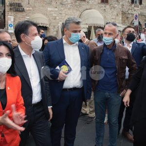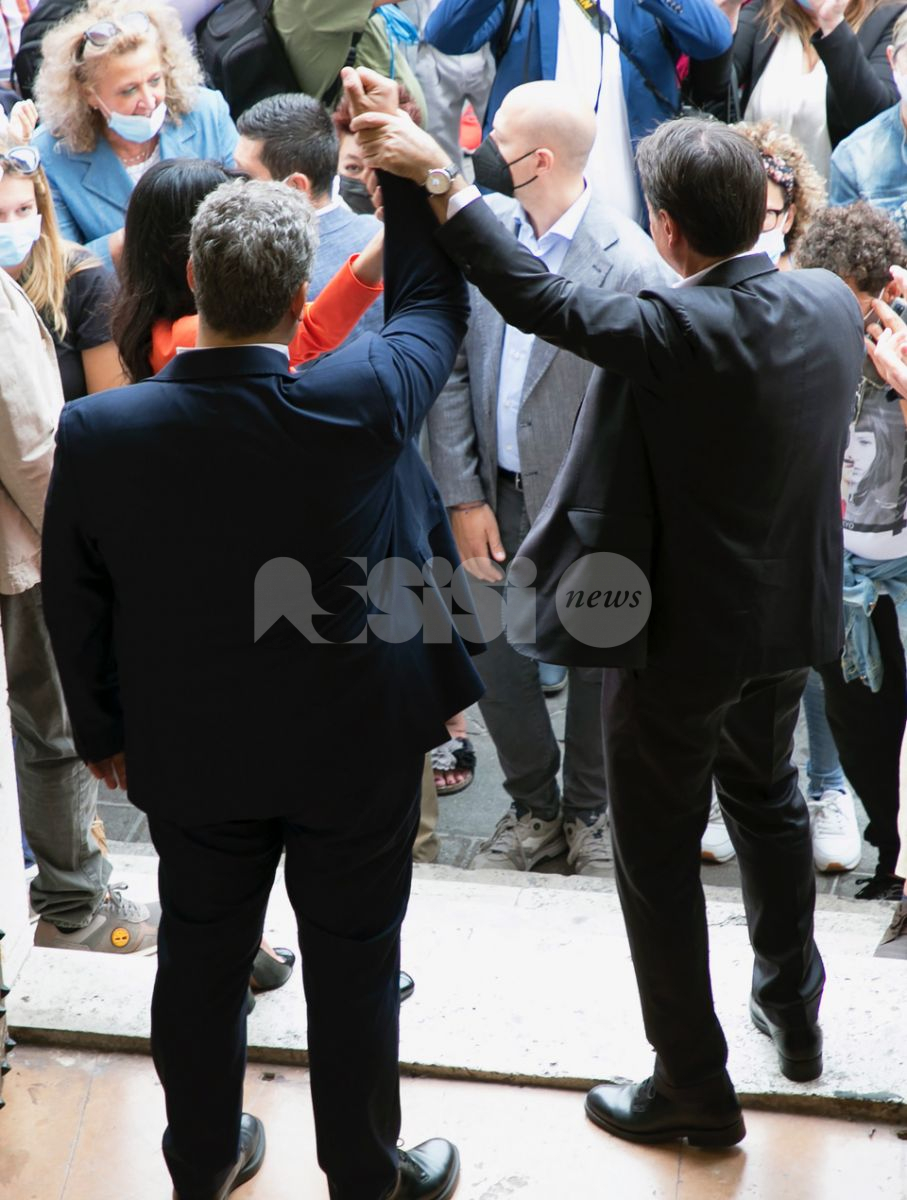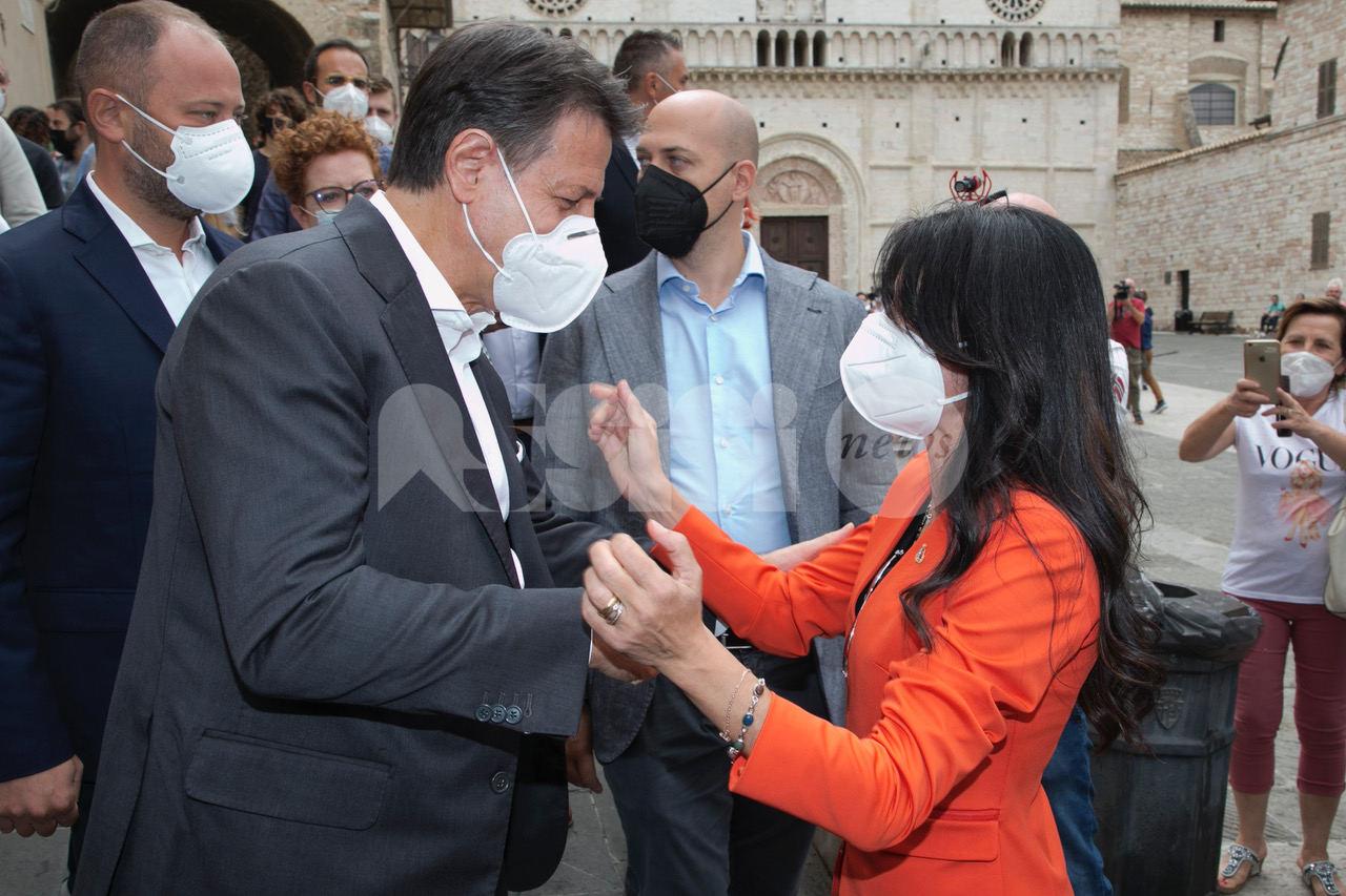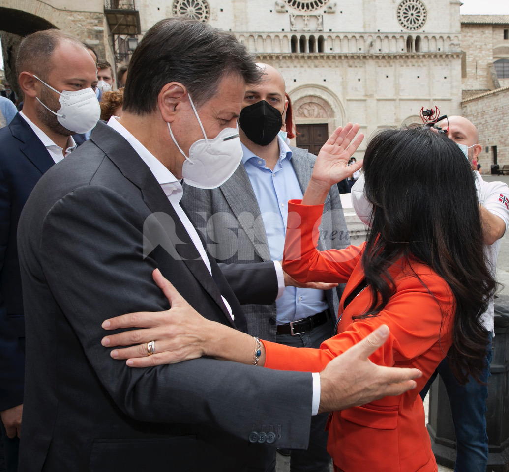 (Stefano Berti, Flavia Pagliochini) Giuseppe Conte arriva ad Assisi per sostenere Stefania Proietti, prima cittadina uscente e in cerca del bis, sostenuta da Assisi Civica, Assisi Domani, Movimento 5 Stelle e Partito Democratico. “Stefania è una grande donna soprattutto competente, e oggi ci vogliono le competenze”, le parole dell’ex premier, secondo cui “Stefania è attenta a tutte le comunità, fa un lavoro immenso. Ama il territorio. Mi piace ricordare che una notte con lei nacque l’idea di un sostegno per le città santuario”. (Continua dopo il video)