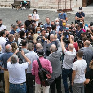 A Piazza San Rufino Giuseppe Conte tocca temi nazionali, ma non solo. “Su Stefania Proietti spenderò più di una parola, anche con i cittadini. La mia presenza qui è già un segno di riconoscimento. Ad Assisi non c’è un atto fideistico o salto nel vuoto, è il riconoscimento di una buona pratica amministrativa. Dico sempre che non abbiamo bisogno di fenomeno che spesso si rivelano dei bluff, ma di gente seria che ama la propria comunità. Stefania è competente e per questo la appoggiamo”, ha detto l’ex premier.
