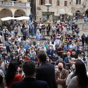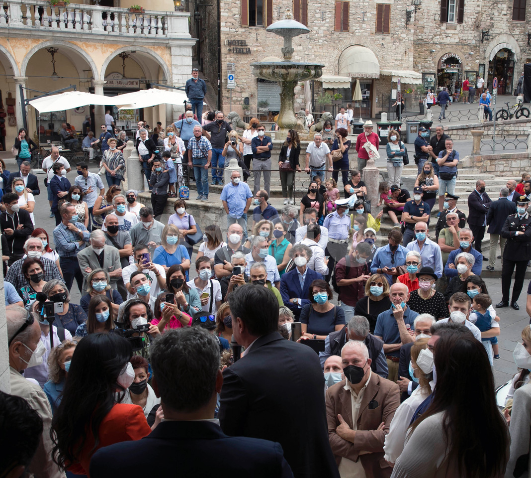 Ed è intervenuta anche Stefania Proietti: “Anche Assisi ha sofferto la tragedia del Covid, che qui ha contato 52 morti. Ma grazie a Giuseppe Conte che era fermo e ci comunicava le cose ho trovato il coraggio”, le parole della prima cittadina. Una notte a mezzanotte lo chiamai trovando vicinanza e sostegno e per la nostra gente che lavora”. Non è mancato un accenno, seppur indiretto, all’ospedale di Assisi: “Le strutture pubbliche le dobbiamo potenziare, così come tutta la sanità pubblica”.
