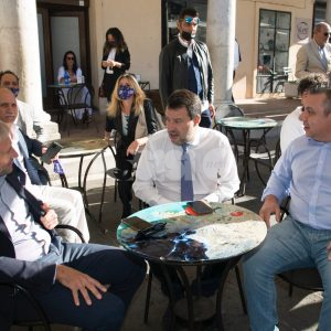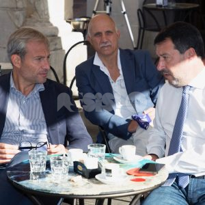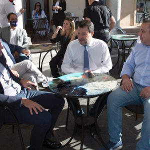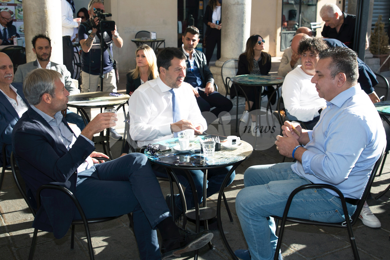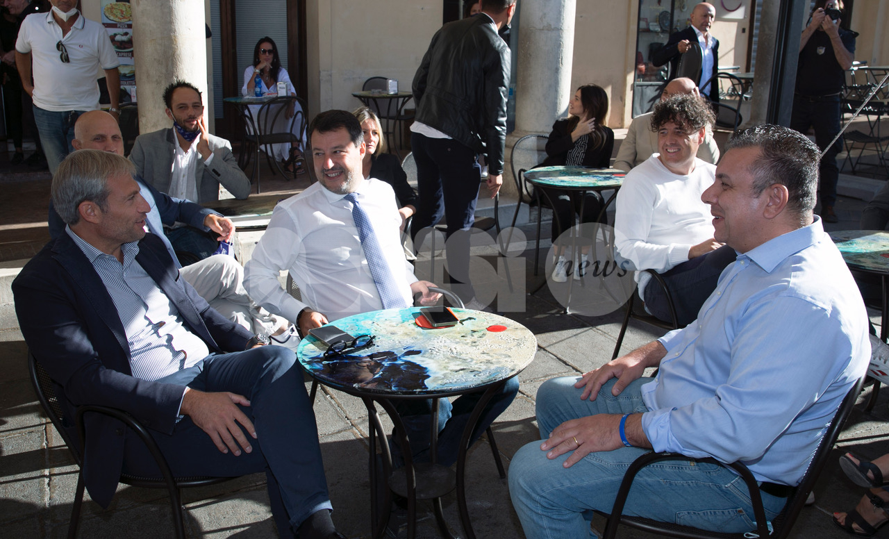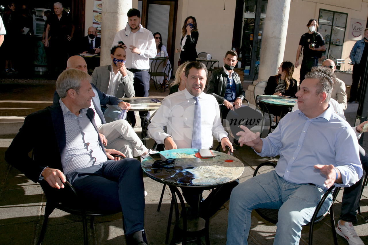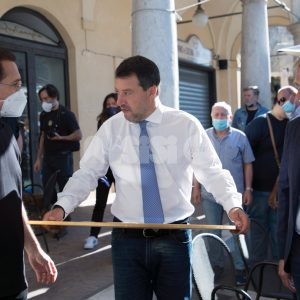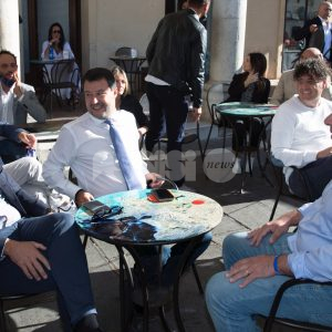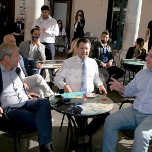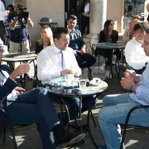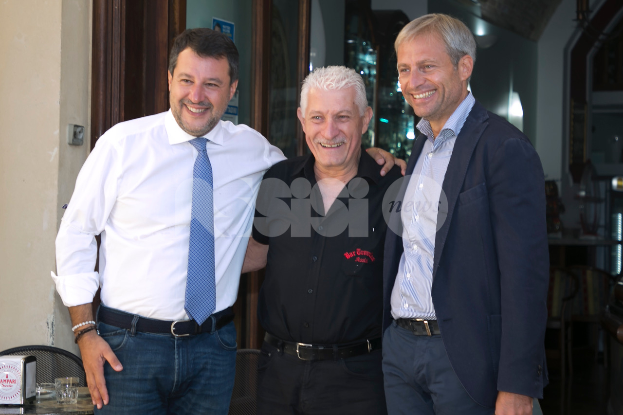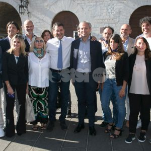 (Flavia Pagliochini, Stefano Berti) “Prendiamo il 50,01% e la prossima foto la facciamo dentro al Comune!”. Si conclude così la prima parte dell’incontro con Matteo Salvini, arrivato nella città serafica per sostenere la campagna di Marco Cosimetti, candidato a sindaco del centrodestra unito e liste civiche. Il senatore ed ex vicepremier è arrivato alle ore 9.15 in piazza del Comune al bar Trovellesi per una colazione con il candidato sindaco Marco Cosimetti, Stefano Pastorelli e i candidati della lista Lega Salvini Assisi. (Continua dopo il video)