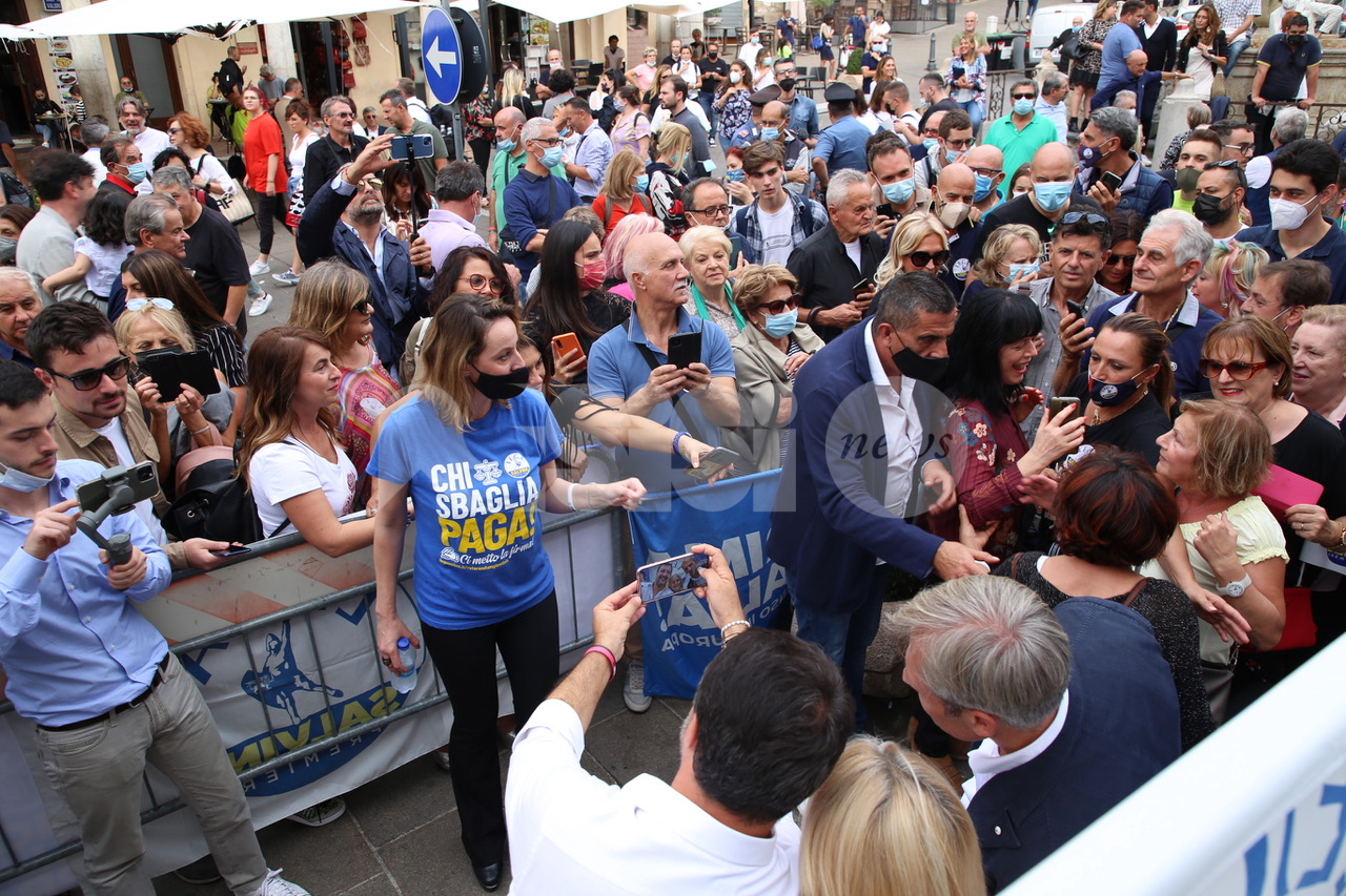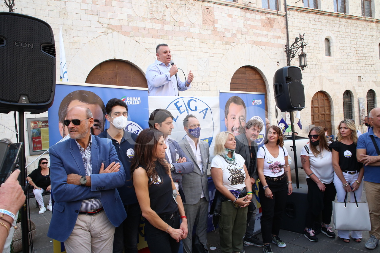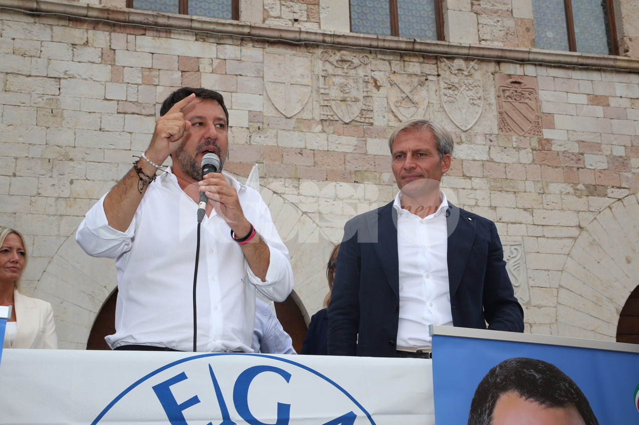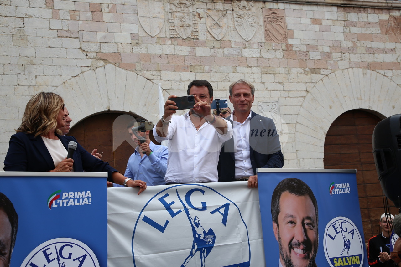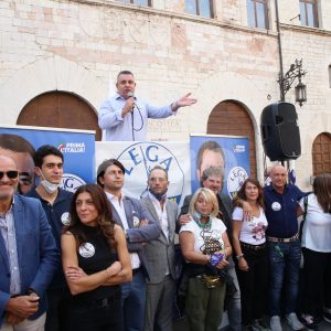 “Il voto del 3-4 ottobre – ha detto ancora Matteo Salvini – è importante per Assisi e frazioni, avete un territorio straordinario, non cedete al cemento e alla speculazione edilizia. Non dovete avere un sindaco che lo fa per guadagnarci, ma un sindaco che lo fa per l’interesse dei cittadini. Come ho già detto, è la scelta di un’Italia che sarà. Noi puntiamo su giovani, lavoro e scuola: la scelta di Assisi è una scelta di vita e di politica, di Lega e centrodestra o Pd e centrosinistra. Anche in questa piazza, di là c’è il gazebo del Pd ma non rischiano assembramenti”. Al termine del comizio Matteo Salvini si è recato nella chiesa Santa Maria Maggiore di Assisi, per un momento di preghiera sulla tomba di Carlo Acutis, morto a 15 anni il 12 ottobre 2006 all’ ospedale San Gerardo di Monza per una leucemia fulminante e beatificato lo scorso anno