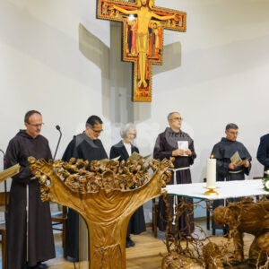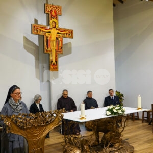 Fra Mauro Botti OFM, Guardiano del Santuario di San Damiano, in uno stile francescano, semplice e fraterno, ha fatto gli onori di casa, accogliendo durante la prima parte della celebrazione i confratelli delle altre Famiglie Francescane, le autorità civili, religiose e militari che hanno voluto essere presenti per questo momento così importante. «Il messaggio di Francesco ha superato i confini della famiglia francescana – ha dichiarato fra Massimo Fusarelli, ministro generale dell’Ordine dei frati minori – . E dopo 800 anni continua a ispirare molti uomini e donne di buona volontà, sia che lo leggano come poesia, come lode cristiana o come preghiera ecumenica o interreligiosa». È toccato a fra Francesco Piloni OFM, ministro provinciale di Umbria e Sardegna a dare l’avvio ufficiale al Centenario, nella sala del Cantico, adiacente al giardino nei pressi del quale era la celluzza di stuoie, che ospitò il Santo di Assisi: «Nonostante la cecità che segnava gli ultimi anni della sua vita – ha sottolineato il ministro della Provincia Serafica – il Cantico ha lo sguardo di fede profonda di chi riconosce la bellezza del creato come riflesso della perfezione divina». Dopo la proclamazione del cantico, accompagnata dal clarinetto, a turno i ministri Generali hanno commentato i passi del Cantico attraverso le creature che compongono la lode. La lettura delle fonti francescane e della Composizione di Assisi, a due voci: Isabella Giovagnoni e fra Luca Giacometti, hanno intervallato i diversi interventi.