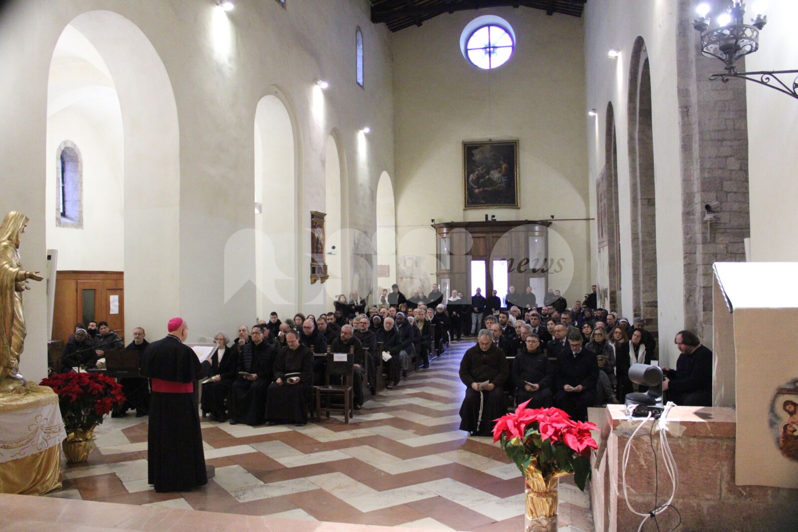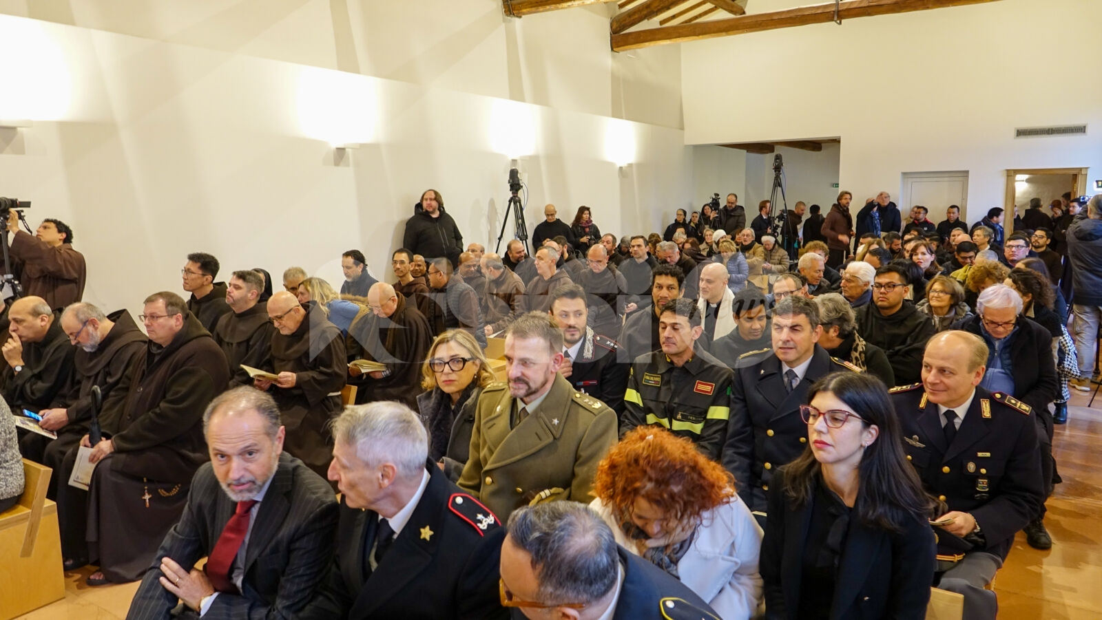 Al Santuario della Spogliazione fra Simone Calvarese, ministro provinciale dei Frati minori Cappuccini del Centro Italia ha presieduto la seconda parte della celebrazione dedicata all’ottavo centenario del Cantico delle Creature. Qui si è voluto ricordare che Francesco, nella sua danza di lode, fa entrare l’uomo in altri due momenti dell’esistenza: il perdono e la morte. Suor Frances Marie Duncan, presidente della Conferenza francescana internazionale dei fratelli e delle sorelle del Terzo Ordine regolare, ha prima offerto una riflessione sulla Madre Terra «della quale Francesco ci dice che è, insieme, sorella e madre: sorella come ogni altra creatura, ma anche madre perché ella ci nutre, producendo ‘diversi frutti con coloriti flori et herba’. Lo sguardo alla terra ci richiama ai problemi della distribuzione equa di quel cibo che la terra produce. Oggi viviamo ancora in situazioni di disuguaglianza che, invece di diminuire, continuano a crescere, con i molti poveri che diventano sempre più poveri e i pochi ricchi che diventano sempre più ricchi». Fra Amando Trujillo Cano, ministro generale del Terz’Ordine regolare, ha introdotto la tematica del perdono: «Il Cantico non parla solo della bellezza della Natura, ma anche delle difficoltà della storia umana: se c’è una lode per il perdono, vuol dire che ci sono colpe da perdonare, come pure infermità e tribolazioni. Troviamo quella unione tra l’ambiente e l’uomo che Papa Francesco ci ha insegnato a chiamare ‘ecologia integrale’, perché ‘un vero approccio ecologico diventa sempre un approccio sociale per ascoltare tanto il grido della terra quanto il grido dei poveri’ (LS 49)»