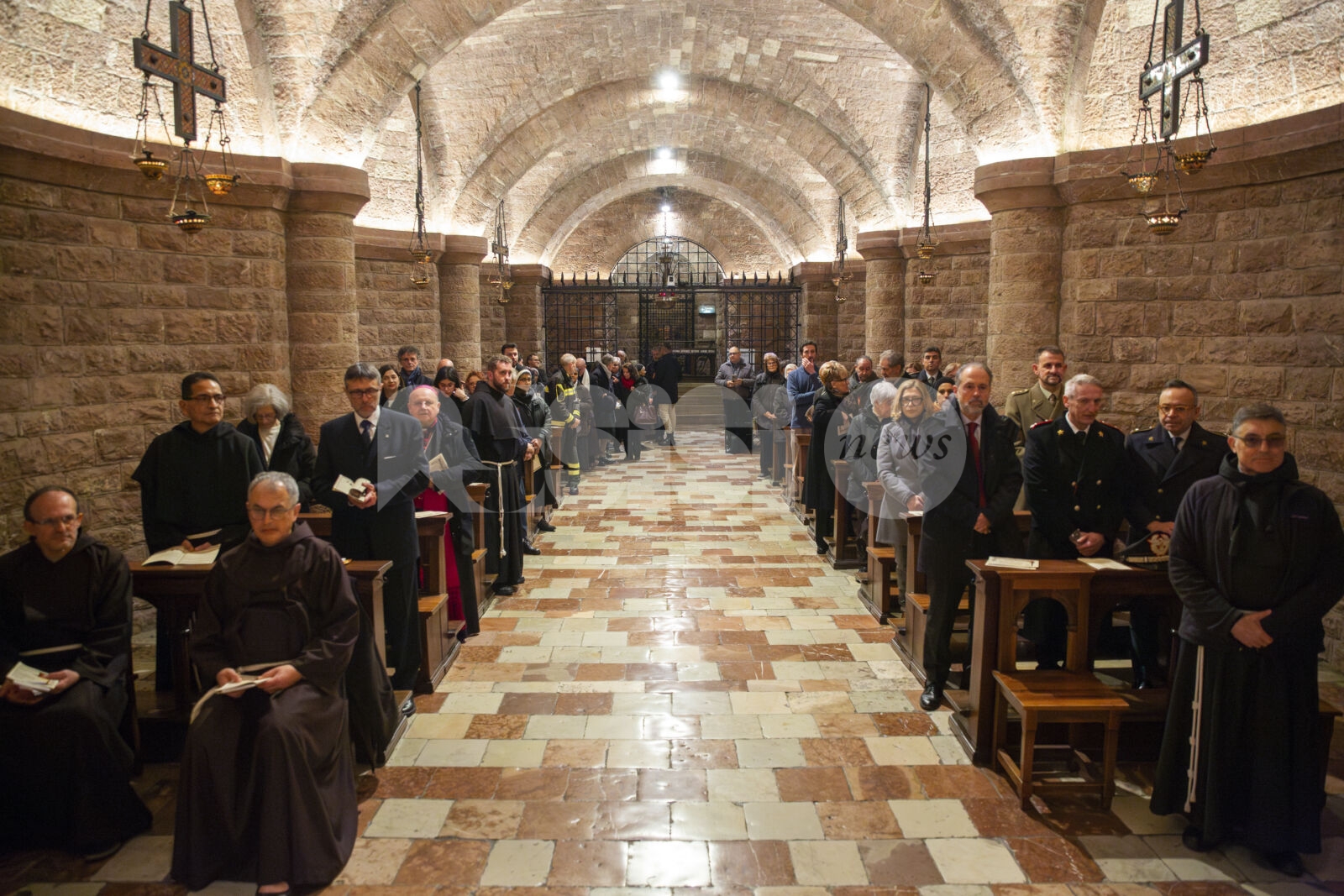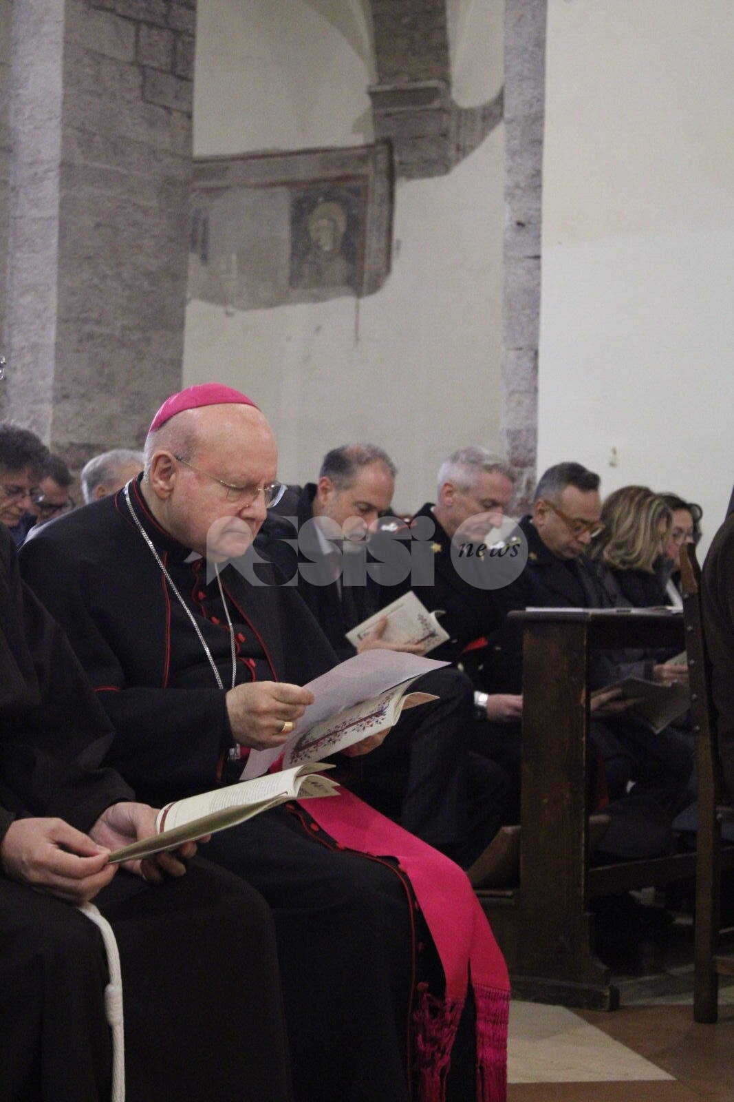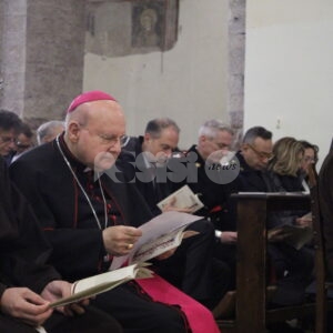 Il vicario dei Frati minori Cappuccini, fra Silvio do Socorro de Almeida Pereira, ha infine gettato lo sguardo sulla realtà ultima e per noi definitiva: la morte. «Perfino per la morte Francesco può dire ‘Laudato si’ mi’ Signore’. Che cosa spiega questa attitudine di Francesco, che riesce a lodare sempre? il suo segreto è la fede in un Dio che è ‘il bene, ogni bene, il sommo bene, che solo è buono’: solo tale fede può spiegare questa lode costante, che riconosce che da Dio tutto proviene e che a Lui restituisce ogni bene, nel rendimento di grazie e nella lode». Il vescovo Sorrentino ha concluso la celebrazione ricordando come le due ultime strofe del Cantico siano state concepite in Episcopio, in particolare la penultima sulla riconciliazione, che Francesco realizzò tra il podestà del tempo e il vescovo Guido II, in quel momento in forte dissidio politico-istituzionale. “Da quel momento e con l’aggiunta l’anno successivo della strofa sulla morte – ha detto il vescovo – il Cantico risuona tra queste pietre e da qualche anno tutto il popolo di Dio ha iniziato ad ascoltare il grido di pace di Francesco e del suo Cantico. Ora, attraverso Francesco e anche grazie a questo santo giovane, che presto sarà canonizzato, il Cantico è di casa qui. Il mio desiderio è che, per tutta la comunità ecclesiale e di rimbalzo per quella universale, questo inno, anche da questo Santuario, possa diventare il Cantico della pace nel mondo e tutti lo possano accogliere e cantare ogni giorno. Ecco perché non desidero aggiungere altre parole – ha concluso – ma cantarlo come faccio ogni giorno per iniziare la mia giornata, perché è un Cantico che non solo apre il cuore ma anche la breccia della pace”. Infine, i rappresentanti della Conferenza della Famiglia Francescana, insieme al vescovo e a tutte le istituzioni presenti si sono spostati alla tomba di San Francesco per la parte finale della celebrazione dell’ottavo centenario del Cantico delle Creature l’omaggio alle spoglie mortali del Santo. Per l’occasione, nella chiesa Inferiore della Basilica è stata esposta la copia più antica del Cantico, all’interno del Codice 338, custodita nella Biblioteca del Sacro Convento.