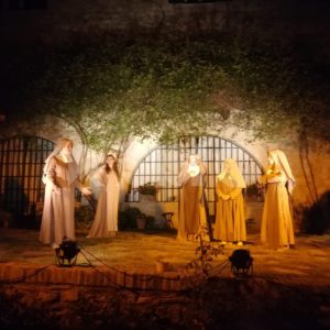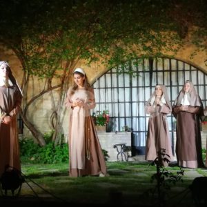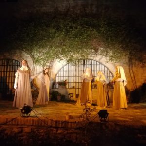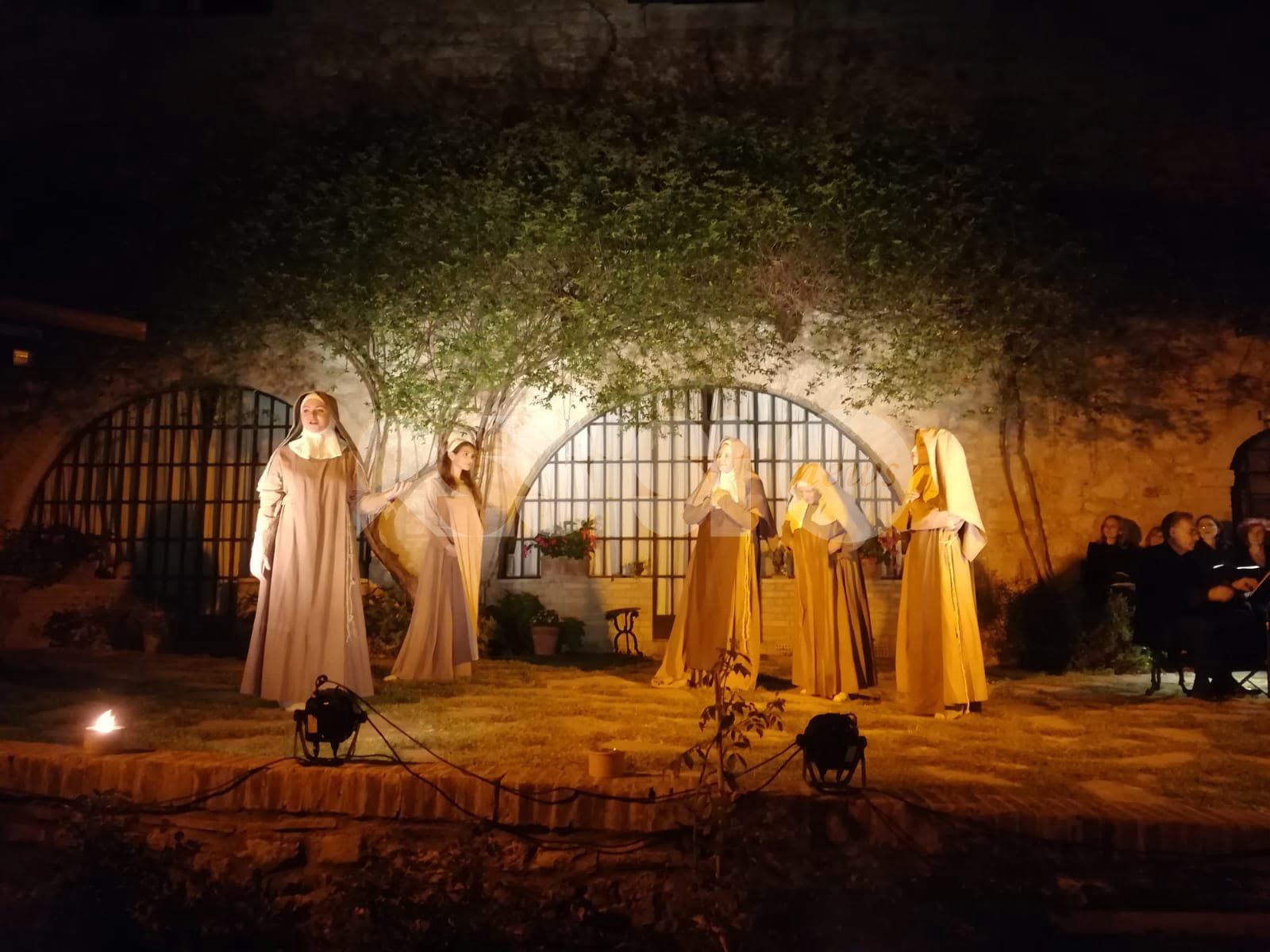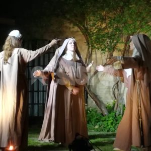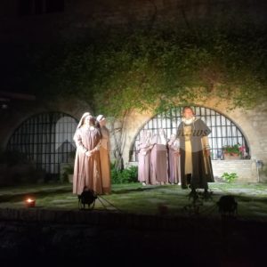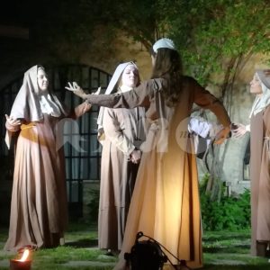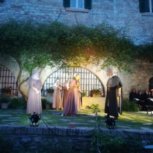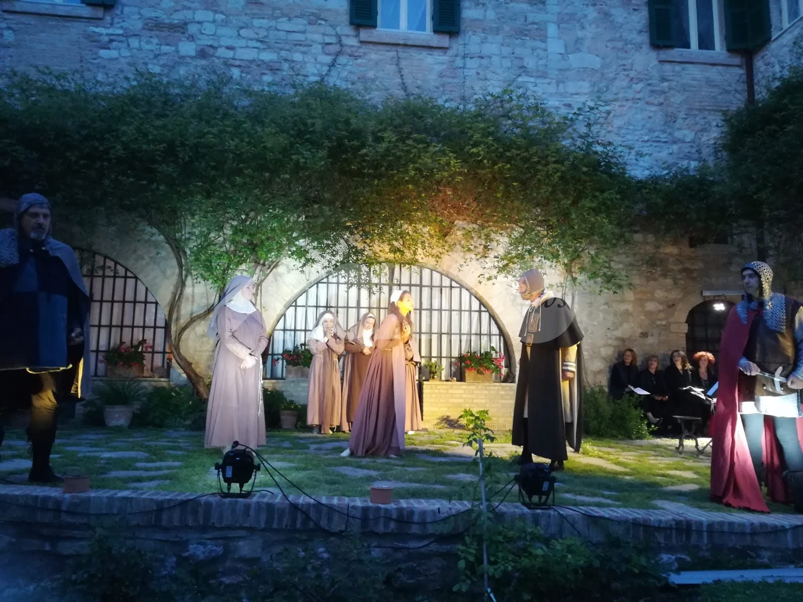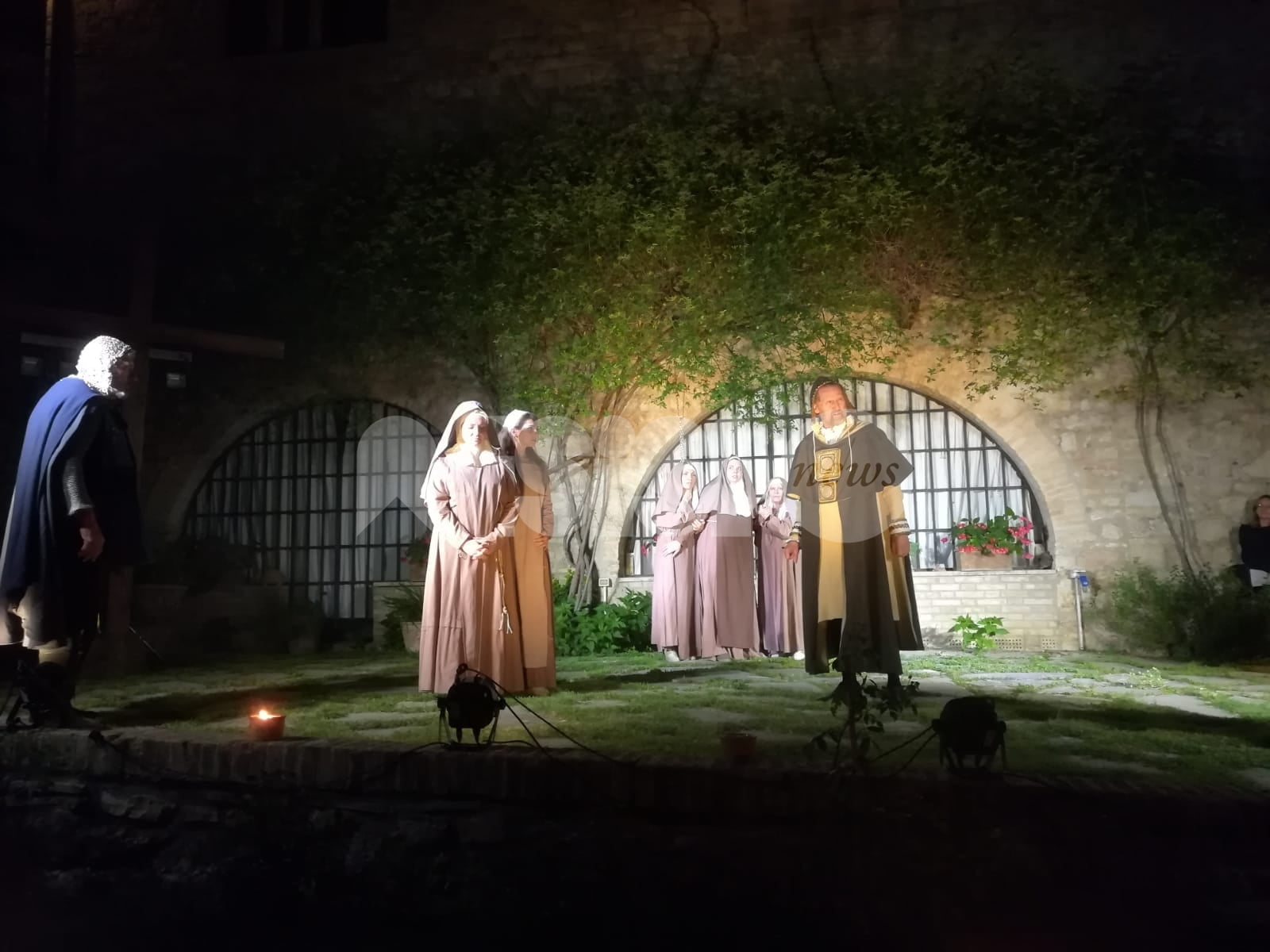 Prima ancora delle celebrazioni del 22 giugno, grande festa lo scorso weekend per “Chiara e Agnese: sorgente di Fede a Sant’Angelo in Panzo”, uno spettacolo (foto nella gallery in basso) ideato e messo in scena da Umberto Rinaldi, realizzato in collaborazione con l’associazione delle guide turistiche dell’Umbria e della Città di Assisi, che ha aperto le celebrazioni per la Festa del Voto 2018. . “Chiara e Agnese sorgente di Fede a Sant’ Angelo in Panzo – dichiara Maddalena D’Amico, presidente dell’associazione guide turistiche dell’Umbria – ha rappresentato un momento di grande partecipazione spirituale e popolare al tempo stesso in quanto l’itinerario storico drammatizzato e sceneggiato volto a ricordare i passi mossi dalle sorelle Santa Chiara e Agnese alla sequela del Vangelo, prima del definitivo trasferimento a San Damiano, ha voluto far immergere i partecipanti nell’atmosfera originaria in cui le due sorelle vissero quei momenti unici e indelebili per la loro e la nostra storia”. La rappresentazione, nell’ambito del progetto Assisi Rinnovata, curata da Commedia Harmonica in collaborazione con la Parrocchia di San Rufino e con la famiglia Marconi, è stata realizzata in collaborazione con l’Amministrazione Comunale e ha visto la partecipazione di circa 200 persone ed è stata l’occasione per valorizzare i luoghi, le memorie e le tradizioni legate alla storia della Città di Assisi.
