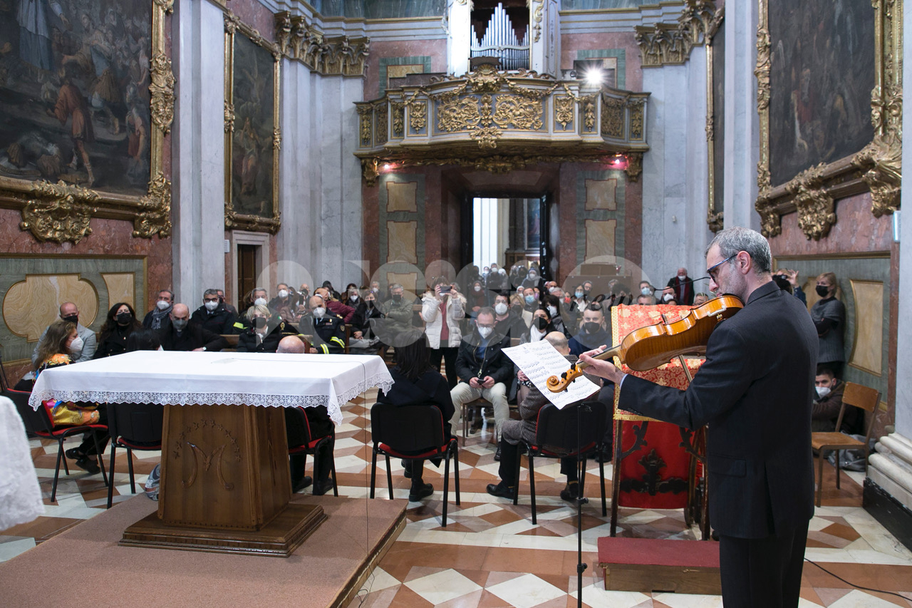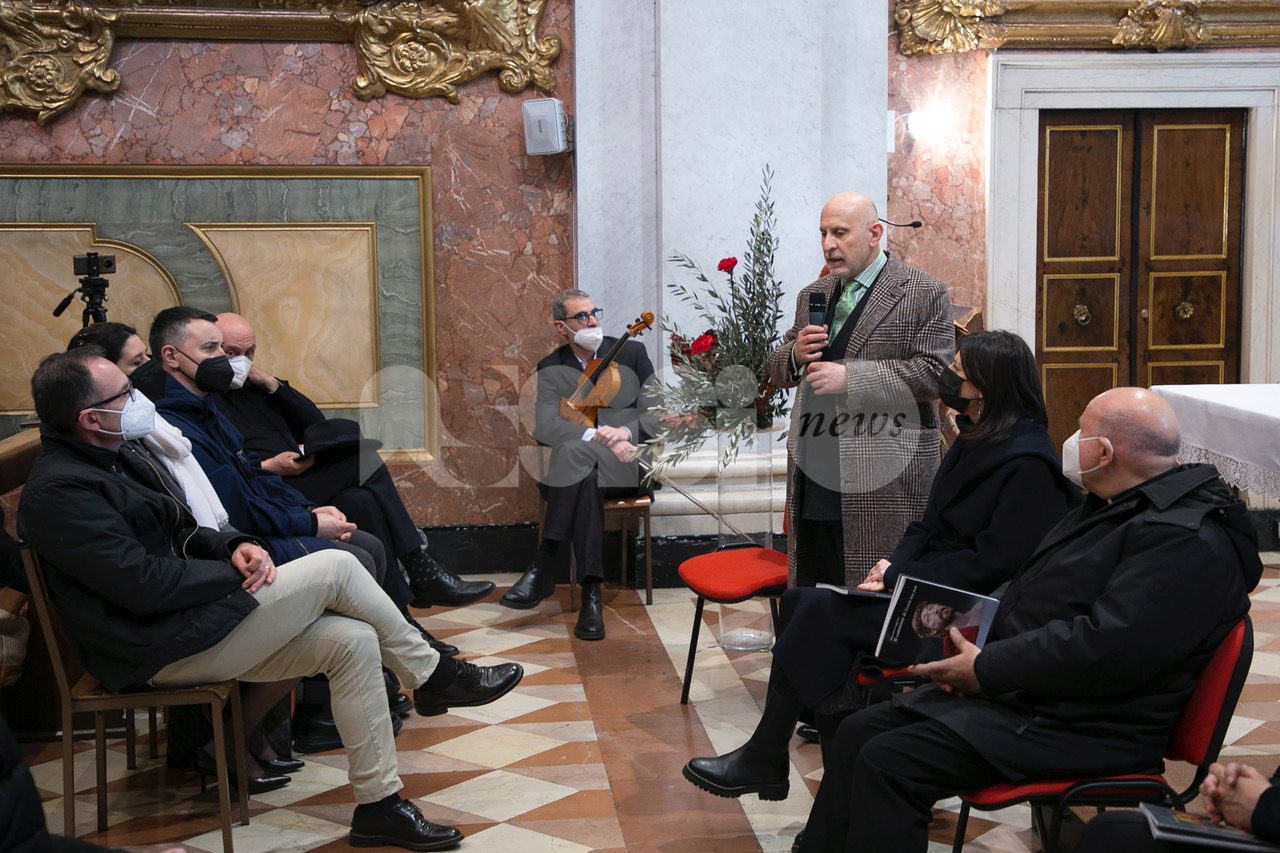 L’esposizione propone testimonianze in catalogo di testi che esprimono tre prospettive con cui leggere la parabola umano-divina del Cristo: il “Sentire” cristiano di Monsignore Leonardo Sapienza, il “Sentire” filosofico del Presidente Marcello Pera e il “Sentire” artistico del critico d’arte Cesare Biasini Selvaggi.Durante l’inaugurazione, Sergio Caggiano, nipote del curatore e violista nell’orchestra del teatro Verdi di Salerno, ha proposto la suite n. 1 di J. S. Bach e altri brani per accompagnare i visitatori nel percorso espositivo.