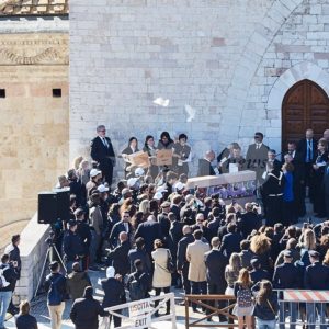 (Flavia Pagliochini-Stefano Berti) I riflettori del mondo si accendono su Assisi. Dalla Basilica di San Francesco parte un messaggio di speranza e solidarietà, ma anche di pace e dialogo nel segno dell’incontro tra san Francesco e il Sultano a sottolineare che il dialogo tra fedi e culture debba essere eterno. Consegna a Re Abdullah II la Lampada della Pace 2019, per “la politica del regno hascemita di Giordania, contraddistinta dall’azione e dall’impegno per promuovere i diritti umani, l’armonia tra le diverse fedi, la riforma educativa, la libertà di culto, allo stesso tempo dando rifugio a oltre 700.000 rifugiati”.