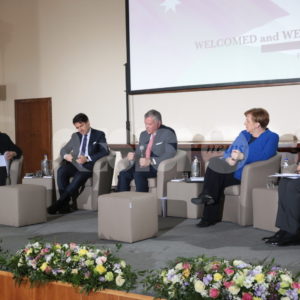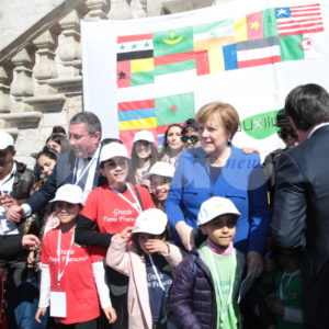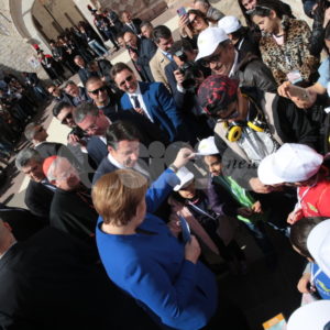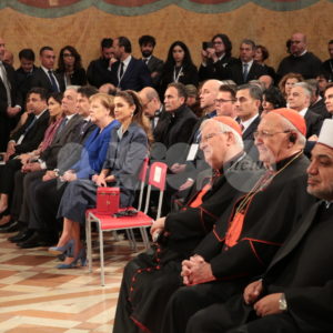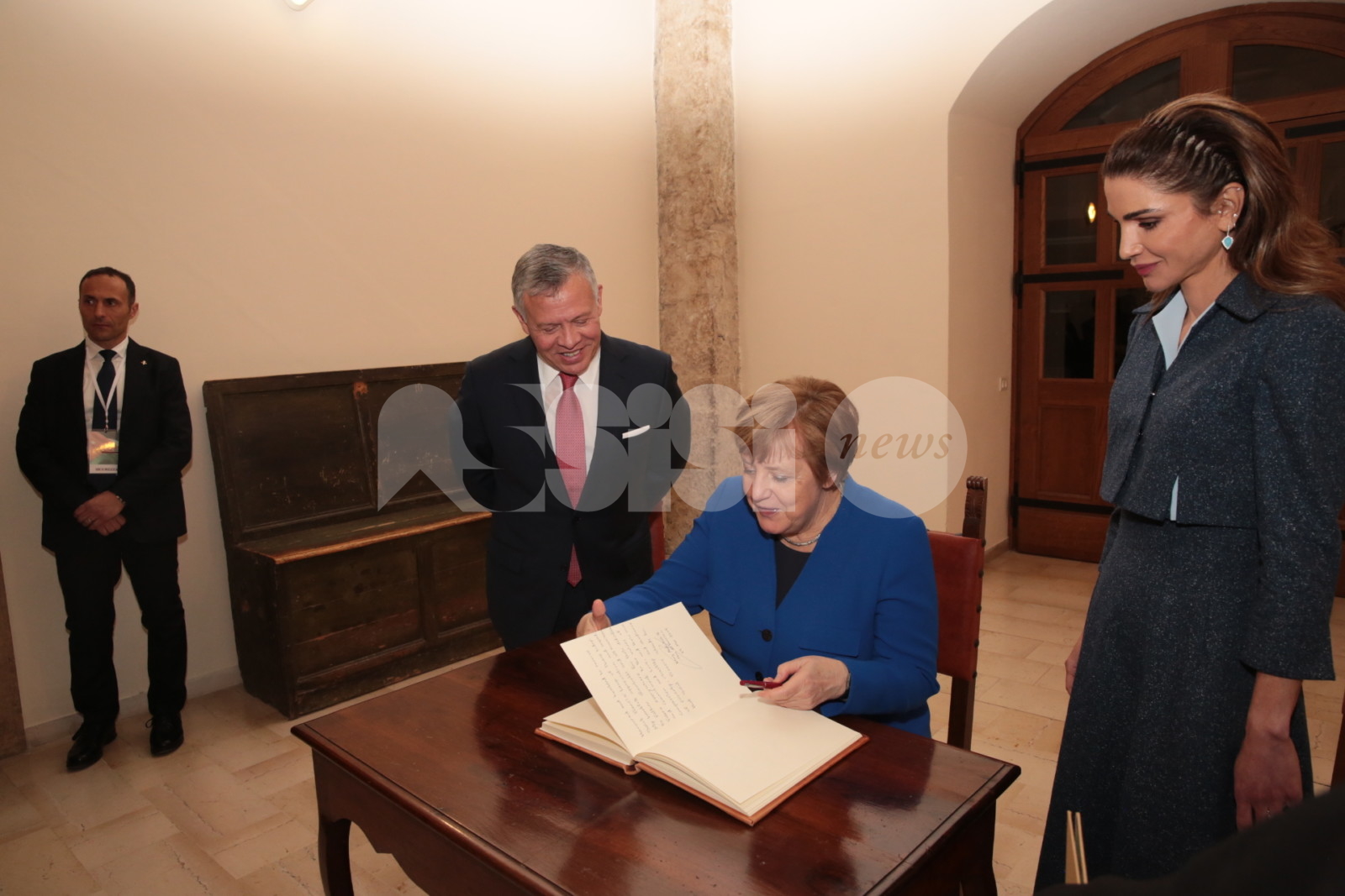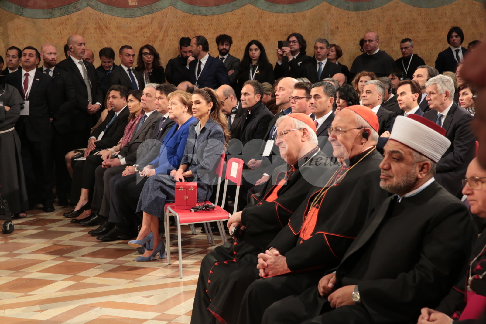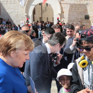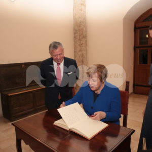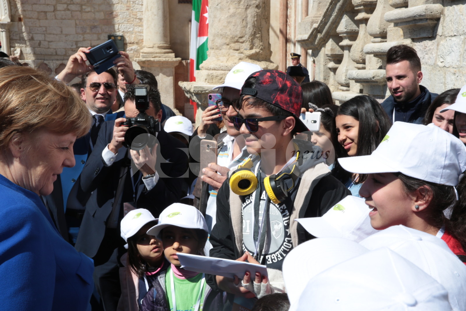 Merkel ha ricordato che il re di Giordania “ha lanciato un segnale importante nel 2007, quando ha appoggiato la lettera inviata da decine di studiosi islamici ai cristiani. Nel 2010 ha proposto all’Onu l’istituzione di una settimana dell’armonia, che da allora viene celebrata ogni anno a febbraio. Milioni di persone sono fuggite dalla guerra e dalla violenza in Siria e il paese vicino (la Giordania, ndr) non ha chiuso gli occhi: alla crudeltà della guerra ha risposto con umanità, aiutando chi ha perso tutto”. Un paese con 10 milioni di abitanti – ha detto la Cancelliera – ha concesso protezione a più di di 770mila profughi dalla Siria, e sono solo cifre ufficiali. È come se la Germania ne accogliesse 5 milioni, l’Italia 4 milioni: noi europei ne siamo consapevoli, questo ci impone il massimo rispetto ma anche la solidarietà e in futuro dobbiamo essere pronti a dare una mano alla Giordania”. Lei dona speranza e si adopera per la pace, è un esempio e un modello. È un vero ambasciatore della pace. Ci auguriamo che Israele e Palestina vivano in pace fianco a fianco. Per me – ha concluso la Cancelliera – è un grande onore passarle la Lampada della Pace 2019″. (Continua dopo la foto)