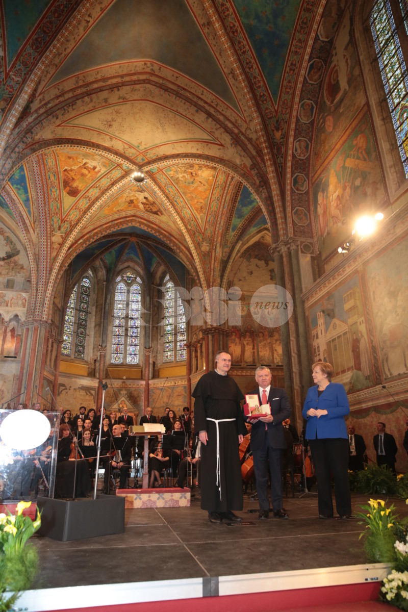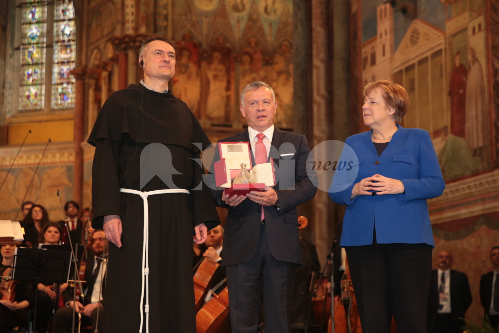 A consegnare la Lampada della Pace 2019 al Re di Giordania è stata Angela Merkel, che ha ricordato l’importanza di Assisi, “Un luogo simbolo – ha detto – che emana la Pace. Qui, nel 2986 durante la guerra fredda, Giovanni Paolo II ha invitato i rappresentati delle varie religioni per pregare per la Pace. Oggi noi siamo chiamati a chiederci perché gli essere umani infliggono sofferenze agli esseri umani?. Il dialogo religioso è irrinunciabile. Sappiamo quanto siano importanti le religioni per il singolo, ma c’è bisogno anche di prestare ascolto all’altro e di rispetto reciproco. Queste due cose si condizionano e rafforzano la convivenza reciproca”.