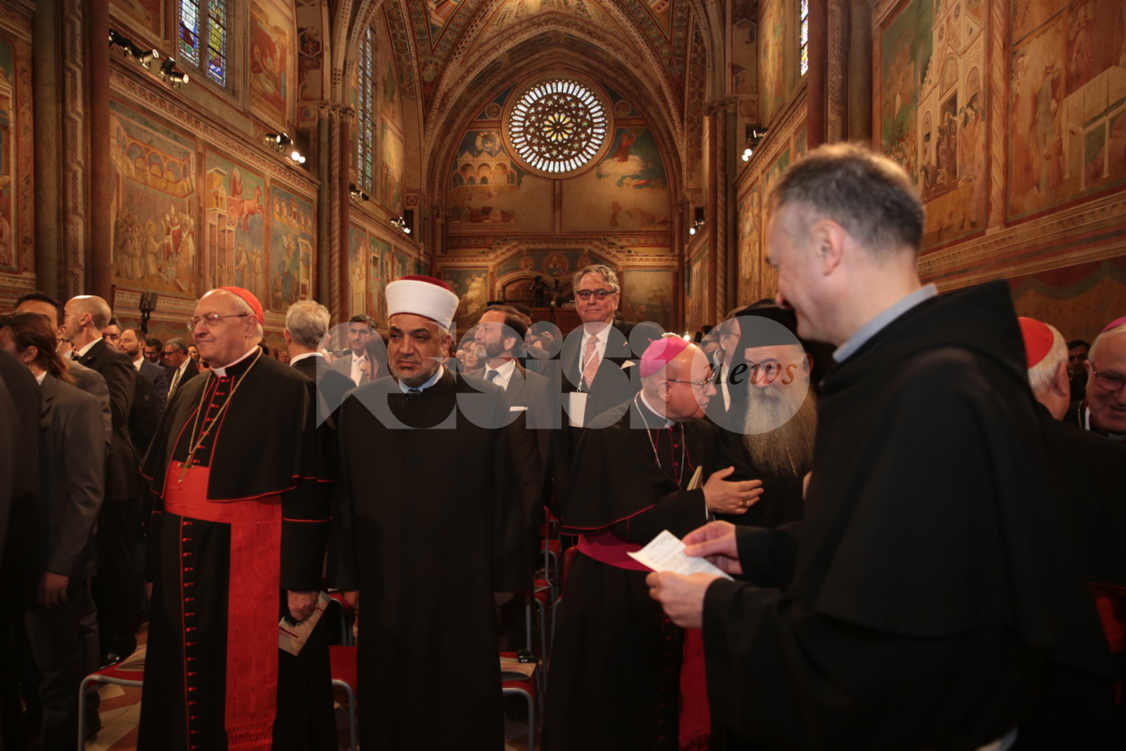 “Come narra il cronista Giacomo da Vitry in una lettera del 1220, Francesco d’Assisi volle recarsi, intrepido e munito solo dello scudo della fede, nell’accampamento del Sultano d’Egitto, Mailk al-Kāmil, che era impegnato a Damietta nel quadro dello scontro armato che vedeva contrapposti cristiani e musulmani. Fra Giordano da Giano, coevo di Francesco, narra che il Poverello di Assisi fu accolto onorevolmente e fu curato molto umanamente nella sua malattia. Non si sa che cosa si dissero Francesco e Mailk al-Kāmil. Tuttavia, essi sono silenziosi testimoni del potere benefico della parola che costruisce ponti e crea un’esperienza autentica di dialogo, una prossimità in grado di reindirizzare le vite, di superare le differenze, di puntare alla profondità dei sogni comuni, per promuovere la pace e la comunione. Sappiamo che Francesco portò con sé il dono di un corno, che ancora conserviamo, e in cuore quell’incontro, come si evince dai suoi scritti”, il saluto di apertura del custode, Padre Mauro Gambetti, per la cerimonia di consegna della Lampada della Pace 2019.