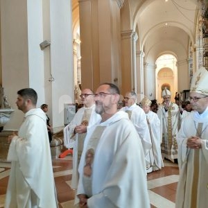 In tanti hanno partecipato, martedì mattina 1 agosto, al “Perdono degli assisani”, il pellegrinaggio che come da antica tradizione raggiunge la Porziuncola. Il gruppo è partito dal centro della città, passando per la Chiesa di Santa Maria Maggiore – Santuario della Spogliazione, ed ha raggiunto la Basilica di Santa Maria degli Angeli, dove il vescovo diocesano monsignor Domenico Sorrentino ha presieduto la santa messa. Numerosa è stata la partecipazione delle confraternite, dei religiosi e delle religiose, dei presbiteri e dei diaconi che si sono ritrovati sui passi di San Francesco con canti, preghiere e meditazioni per prepararsi a ricevere l’indulgenza della Porziuncola.
