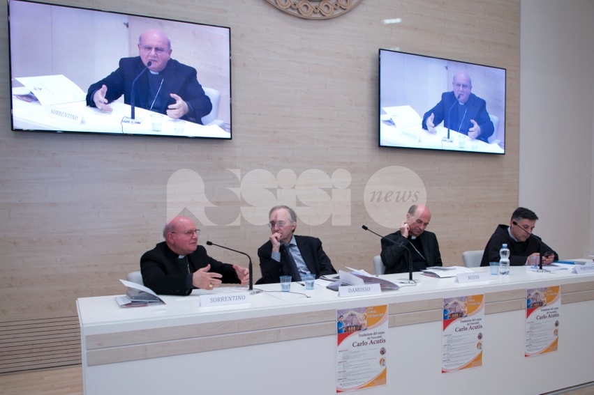 Grande partecipazione domenica nella Sala Stampa del Sacro Convento di Assisi per la presentazione “Originali, non fotocopie”, il libro su Carlo Acutis e Francesco di Assisi. A parlarne con l’autore, il vescovo di Assisi Mons. Domenico Sorrentino, il direttore della Sala Stampa, padre Enzo Fortunato, il segretario generale della Conferenza Episcopale Italiana, Monsignor Stefano Russo, e il caporedattore del Tg1, Piero Damosso. L’evento ha aperto il programma di cerimonie per la traslazione del corpo di Carlo Acutis previste dal 5 al 7 aprile.