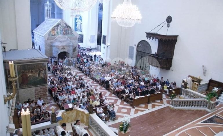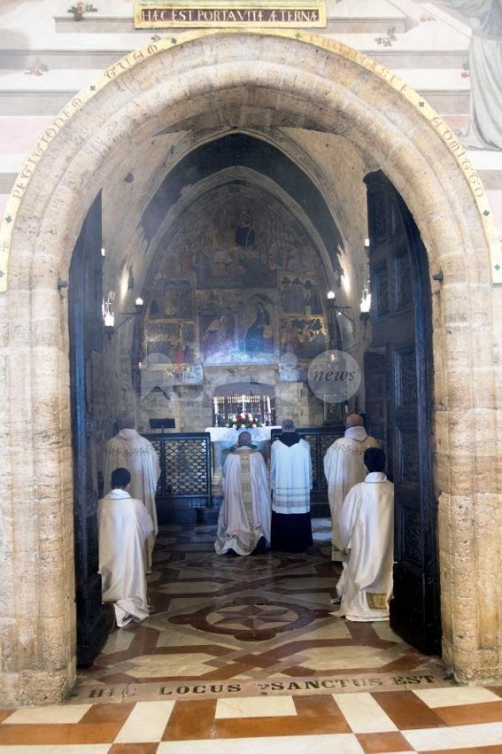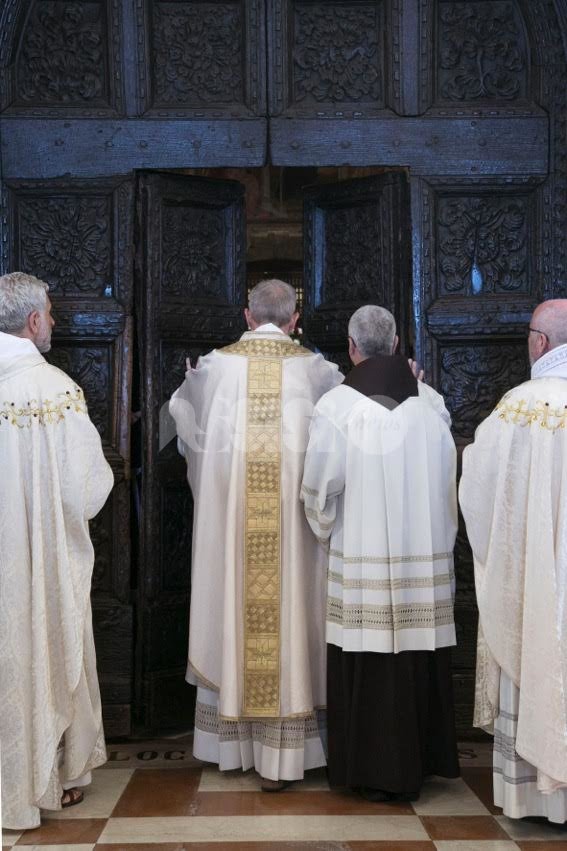 Al via a Santa Maria degli Angeli i festeggiamenti per il Perdono di Assisi 2018. Oggi, mercoledì 1° agosto, l’apertura della Solennità del Perdono. Nella mattinata il M. R. P. Michael Perry, Ministro generale dell’Ordine dei Frati Minori, ha presieduto alle 11 la Solenne Celebrazione Eucaristica terminata con la Processione di “Apertura del Perdono”. “La Parola di Dio oggi – l’omelia del ministro generale – ci vuole incoraggiare a combattere quella cultura di esclusione e distanziamento che sembra imbattibile. Il Signore stesso – ha proseguito fra Perry – dice, ‘avvicinatevi’ e ‘saziatevi’. Questi due verbi sono un appello che contrasta con la mentalità egoista di chi sta bene e non vuole essere disturbato. Sono parole che ci spingono, come direbbe Papa Francesco, ad aprirci a un incontro personale, che contempla un tempo adeguato per accogliere, conoscere e riconoscere l’altro”.