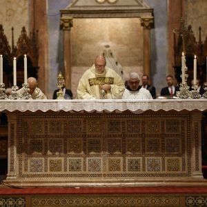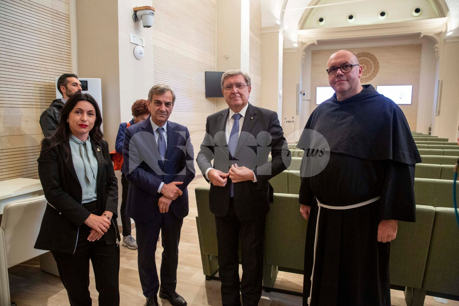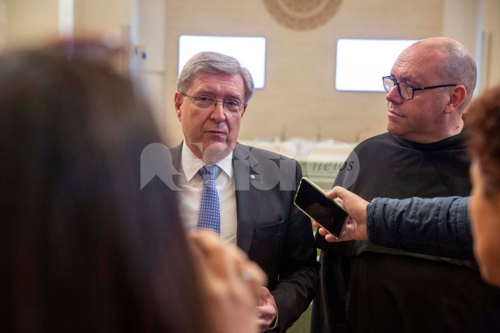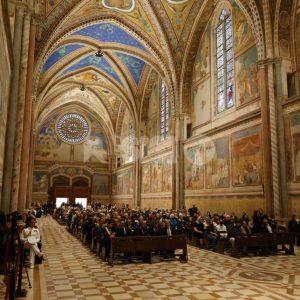 “Vogliamo ricordare e ringraziare – ha aggiunto fra Moroni – tutti coloro che ci aiutano – qui presenti o no – in questa difficile ma non meno bella sfida, consapevoli che siamo e saremo sempre tutti chiamati a prenderci cura, a sostenere, costruire e consolidare non solo il patrimonio artistico e culturale, ma anche e soprattutto le nostre relazioni, la nostra quotidianitĂ e quella di tanti nostri fratelli e sorelle in difficoltĂ in uno spirito di fraternitĂ e di condivisione. Alla luce di tutto ciò come non spendere una particolare parola di ringraziamento per voi cittadini di Assisi e dell’Umbria intera: questo tesoro che è il complesso della Basilica e del Sacro Convento – con la vita dei frati che da secoli li custodiscono quasi ininterrottamente – sono legati a doppio filo da profondi legami di fede, di amicizia, di collaborazione, di mutuo sostegno. A nome di tutti noi grazie di cuore: cerchiamo di continuare a camminare insieme. Per questo desidero invitare in modo particolare proprio i cittadini di Assisi a partecipare, domenica prossima, 2 ottobre, alla S. Messa che si terrĂ qui in chiesa superiore alle 11 (trasmessa in diretta su Rai1). SarĂ una gioia grande celebrare il rendimento di grazie al Signore, insieme, nella casa di Francesco”.