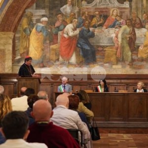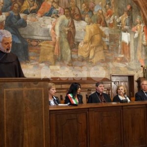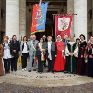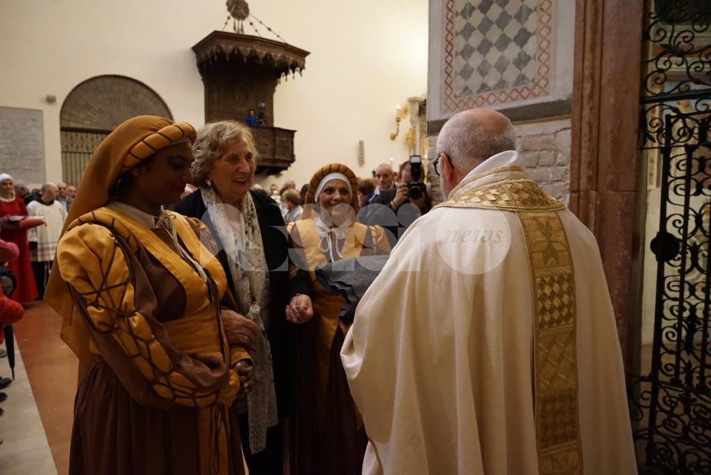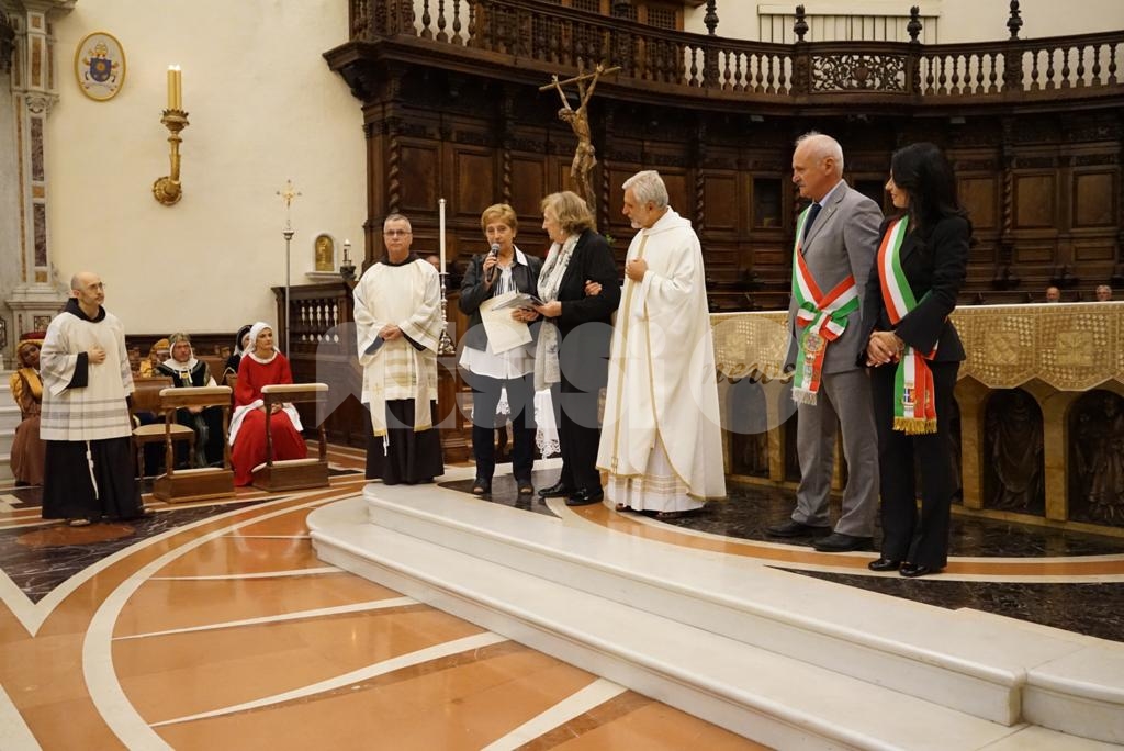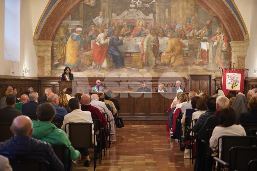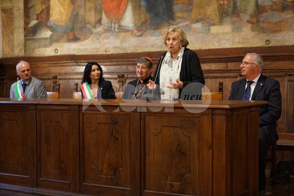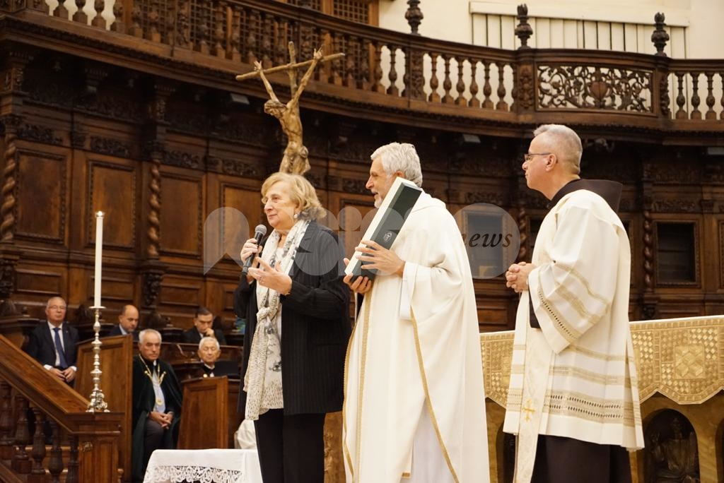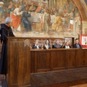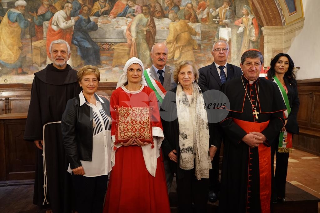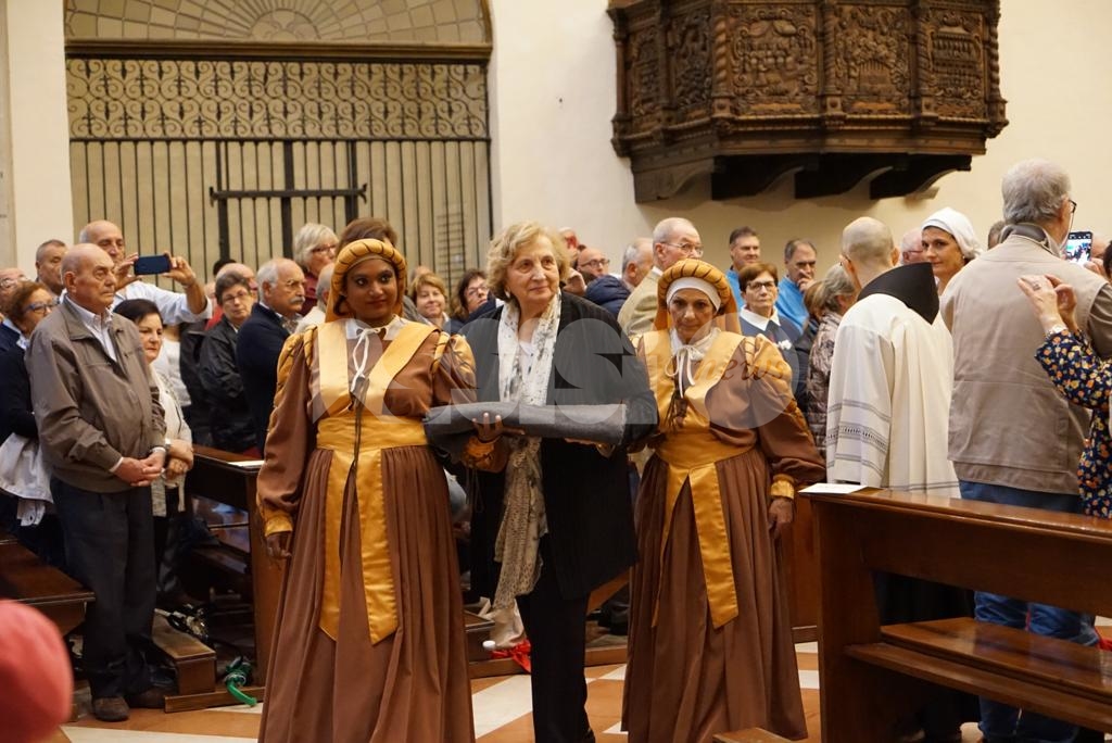 Aperta oggi a Santa Maria degli Angeli la due giorni di celebrazioni il Patrono d’Italia, con la solenne celebrazione del Transito di San Francesco 2019. Questa mattina la consegna del riconoscimento “Rosa d’argento”, in memoria di Jacopa dei Settesoli, che in seguito all’incontro con San Francesco, cambiò radicalmente vita divenendo testimone di fede e di carità, a Zaira Conti, che da oltre 40 anni si occupa di giovani a rischio.