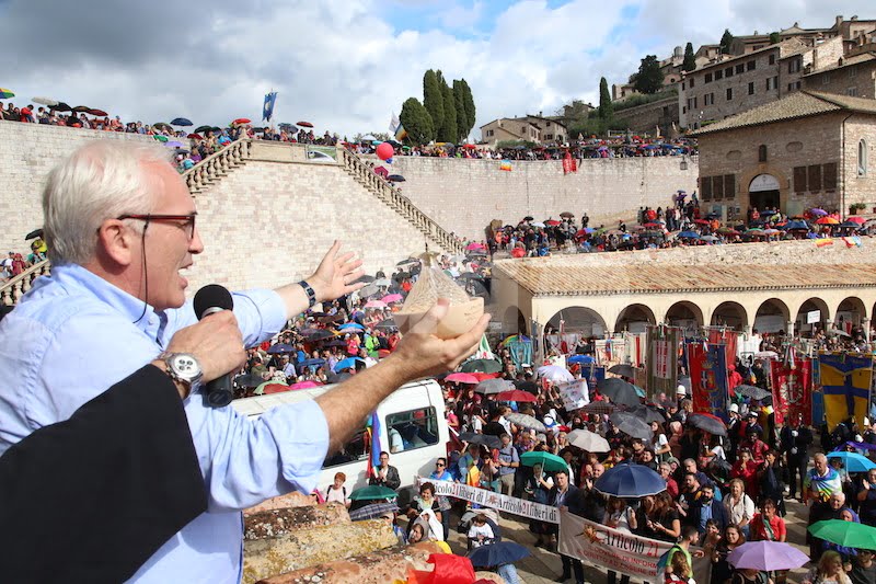 “Il 12 ottobre 1997, più di centomila persone marciarono da Perugia ad Assisi invocando’ Un’economia di giustizia’. Da allora – si legge nell’annuncio della Marcia PerugiAssisi 2020 – molte cose sono peggiorate. La crescita vertiginosa delle disuguaglianze e delle ingiustizie è diventata la prima e più grave minaccia alla pace nel mondo. Il riscaldamento globale e il cambiamento climatico sono le conseguenze più evidenti di questo disastro planetario. Dopo cinque decenni di negoziati e accordi, una nuova, spaventosa, corsa al riarmo nucleare sta minacciando l’ annientamento della vita sulla terra. Un’ altra economia è necessaria e urgente”.
