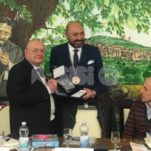 In quest’ultimo caso, i Priori Serventi 2019 hanno consegnato l’assegno al sindaco di Assisi Stefania Proietti, quale prima cittadina del Comune di Assisi, capofila e sostenitore di un progetto di riqualificazione della struttura. I soldi donati serviranno ad acquistare cose utili a migliorare la vita degli animali ospiti. Un’idea della Prioranza per rappresentare plasticamente il legame tra la festa e gli animali, tra l’uomo e il Santo, tra ambiente e religione. Durante la serata, i Priori Serventi 2019 hanno consegnato una targa ricordo al Prof. Giovanni Zavarella e ad Antonio Russo, presidente dell’Associazione Priori del Piatto di Sant’Antonio Abate.