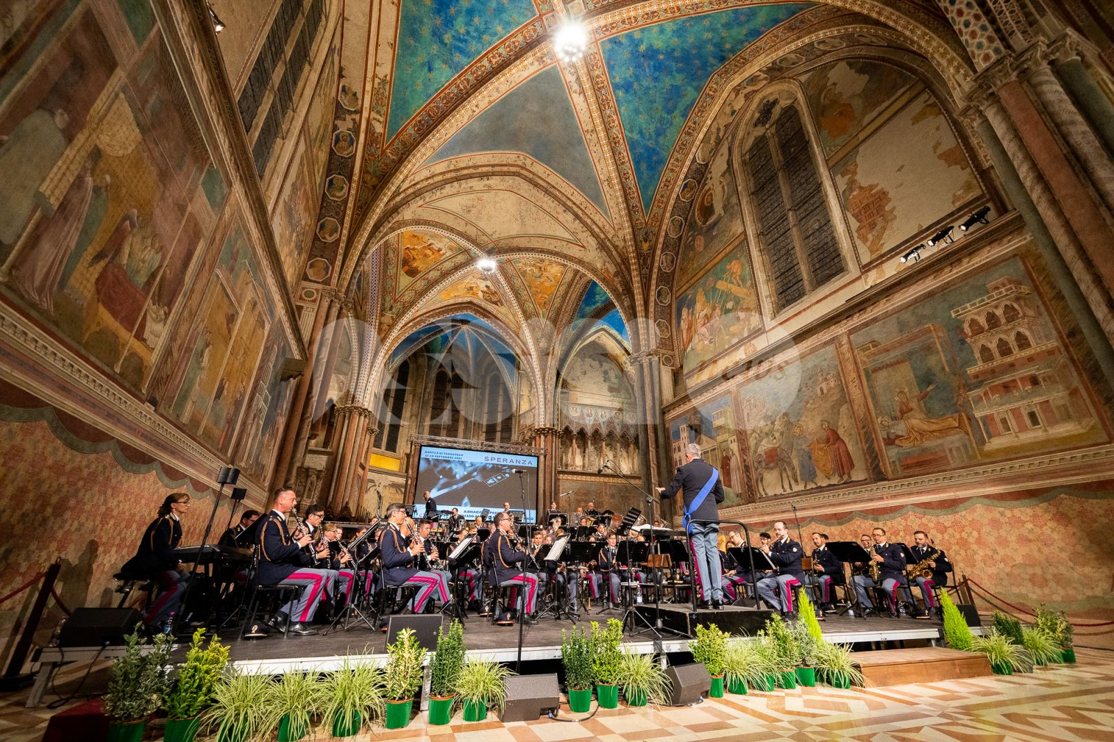 Sabato sera è stata la basilica superiore di Assisi a fare da cornice al concerto della Banda musicale della polizia di Stato che si è esibita insieme al tenore Francesco Grollo e alla violinista Olga Zakharova. La Polizia di Stato (qui il video dell’esibizione) è da sempre vicina alle cause benefiche attraverso iniziative istituzionali a favore di ammalati, disabili, famiglie in difficoltà, bambini meno fortunati. Sentimenti di solidarietà espressi attraverso la musica, il linguaggio universale che raggiunge tutti senza distinzioni di opportunità. Composta da 103 elementi, guidati dal maestro direttore Maurizio Billi e dal maestro vicedirettore, Roberto Granata, ha coinvolto i presenti in un repertorio classico di altissimo livello. A esibirsi anche il maestro Grollo, promotore del progetto Musica per il Sociale, il cui obiettivo è sostenere e incentivare la presenza delle persone con disabilità agli eventi musicali, per condividerne l’emozione e diffondere un messaggio di inclusione e solidarietà.