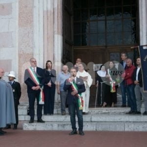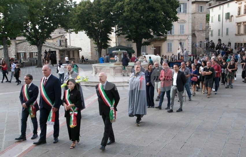 I cavalieri della Cavalcata di Satriano 2018 sono partiti dopo pranzo da Armenzano, poco prima delle 6 il raduno a Porta San Giacomo, per arrivare in gruppo in Piazza del Comune dove, alle 18, si terrà l’incontro tra le municipalità di Assisi, Nocera Umbra, Spello e Valtopina. In Piazza Santa Chiara per l’omaggio floreale alle Clarisse, la consegna della pergamena al sindaco di Assisi, il saluto dei sindaci e la benedizione dei Cavalieri.