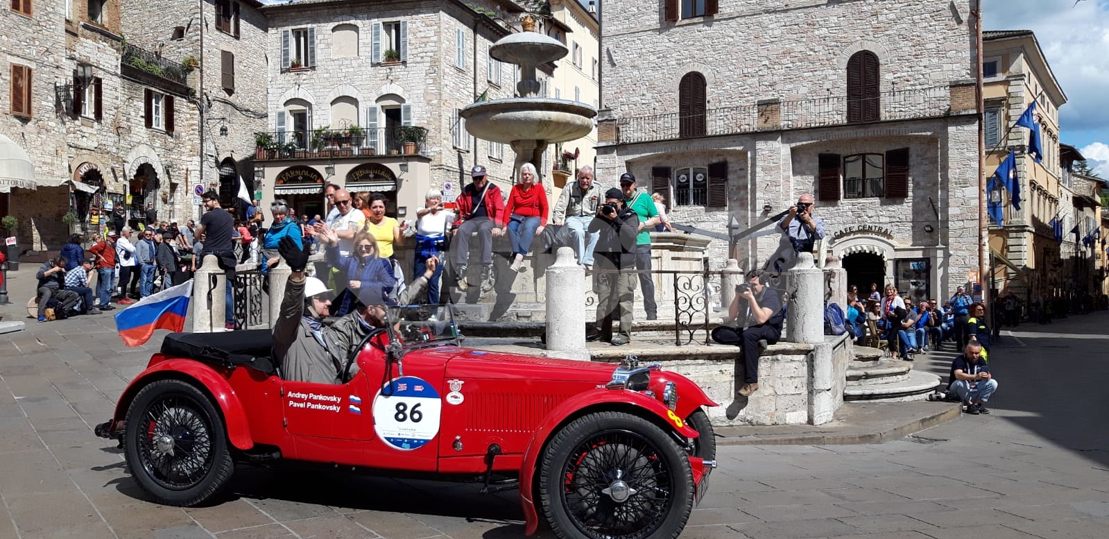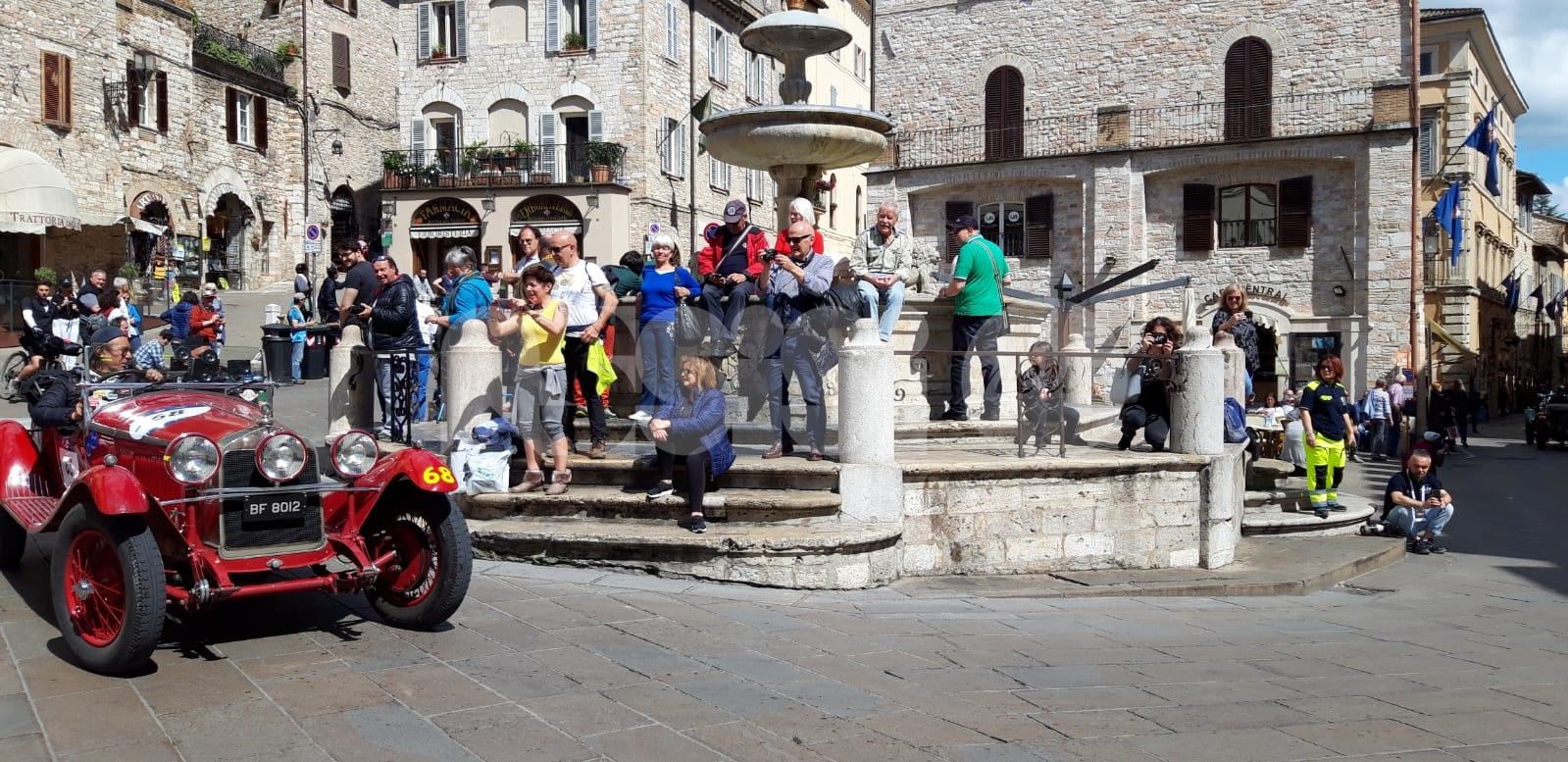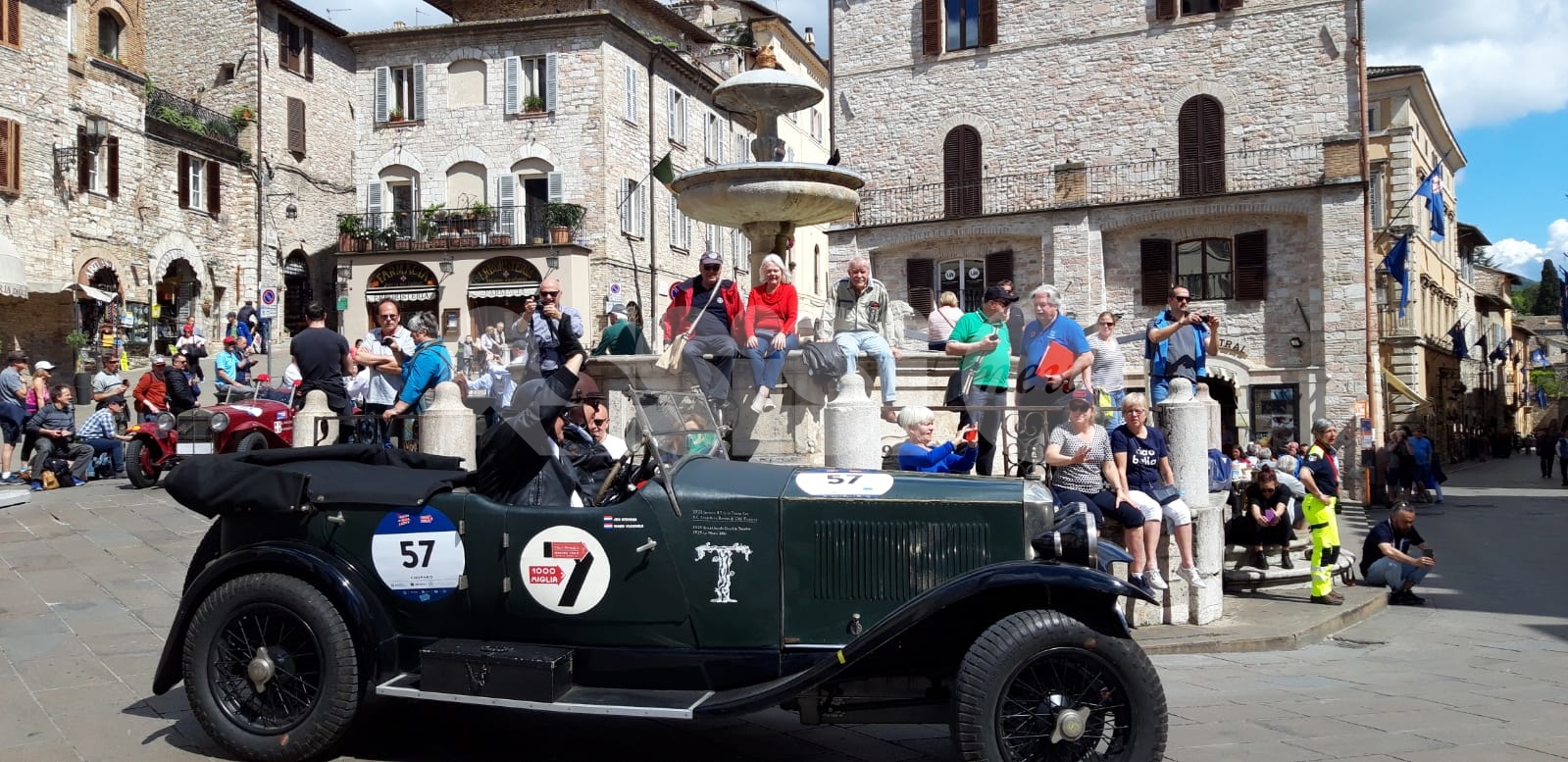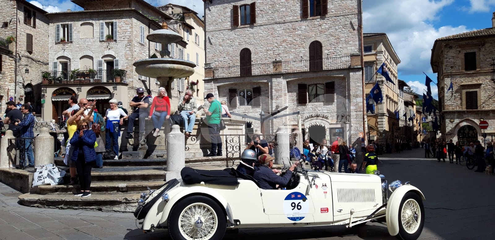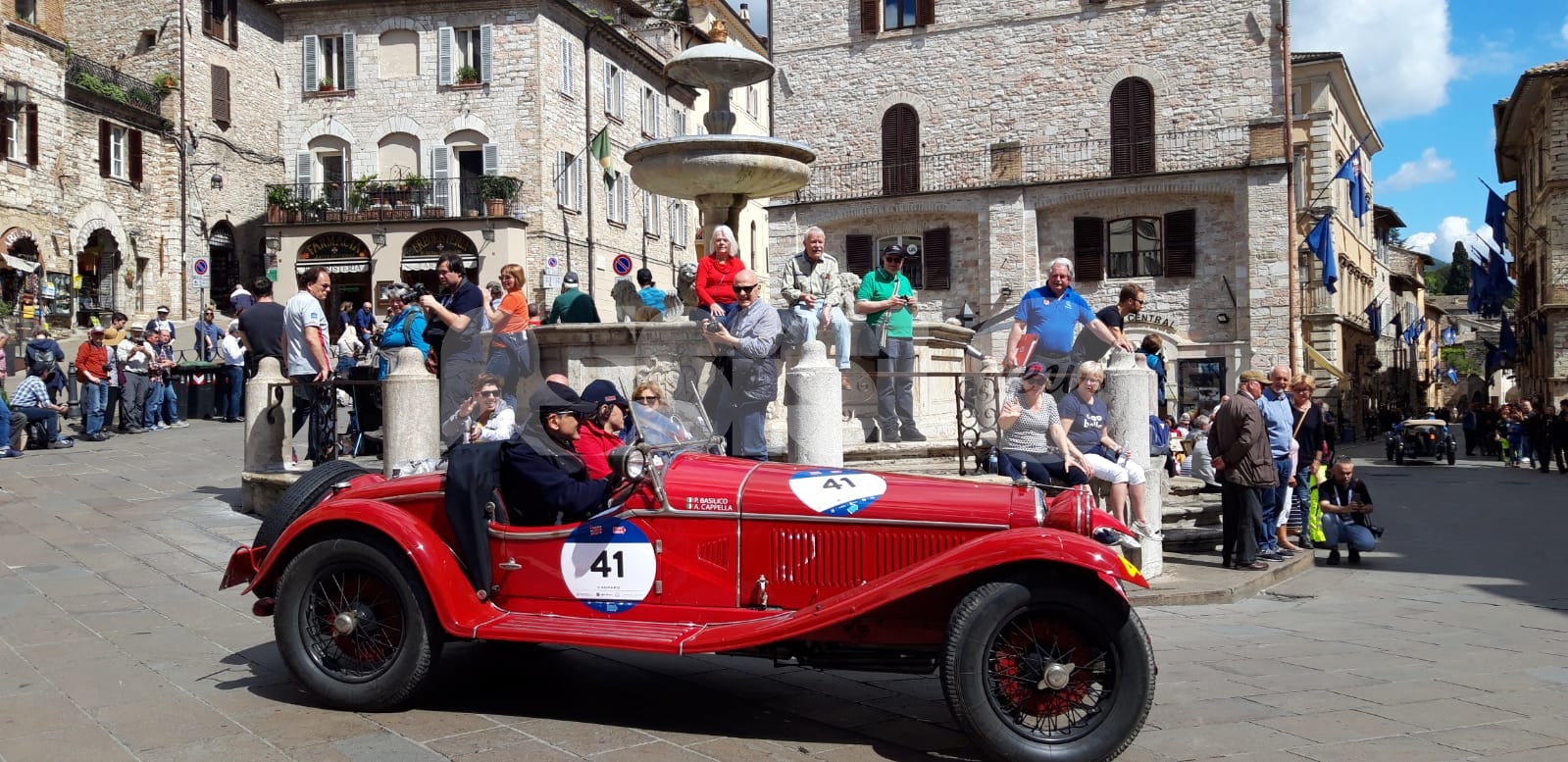 La magia delle Mille Miglia 2019 ad Assisi. Il lungo serpentone di auto – le circa 150 del “Ferrari Tribute” e del “Mercedes Benz Challenge” e le circa 500 della corsa d’epoca – ha fatto tappa in Umbria colorando anche la città serafica. Da Brescia a Roma e ritorno, gli equipaggi provenienti da 40 paesi esteri attraverseranno molte delle più belle località d’Italia; tra queste, nella seconda tappa, spiccano alcune tra le più suggestive località dell’Umbria, tra cui Gualdo, Perugia, Solomeo, Todi e Terni. (Continua dopo il video)