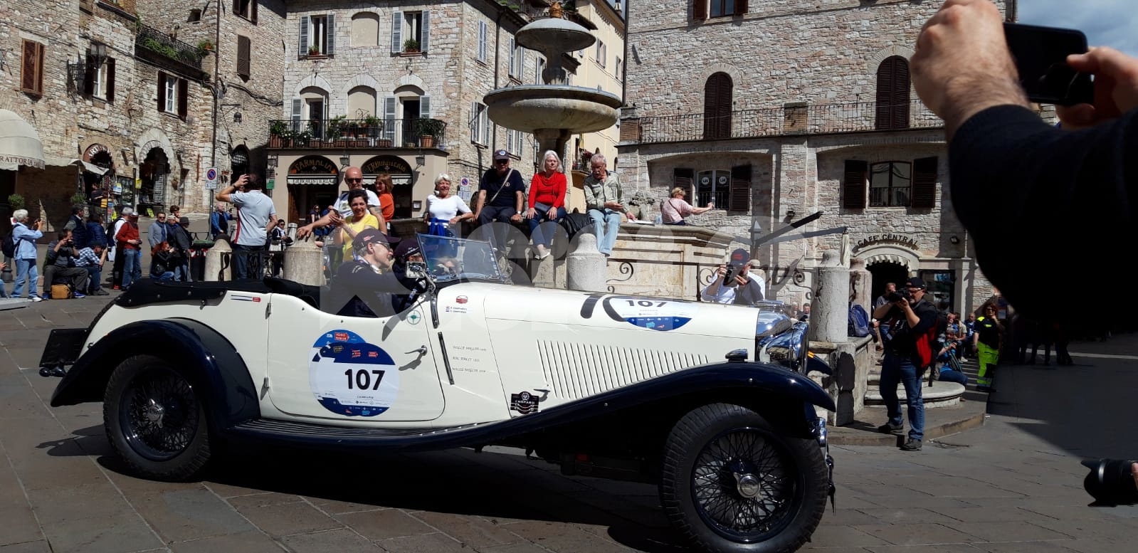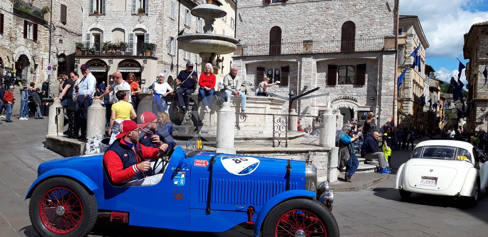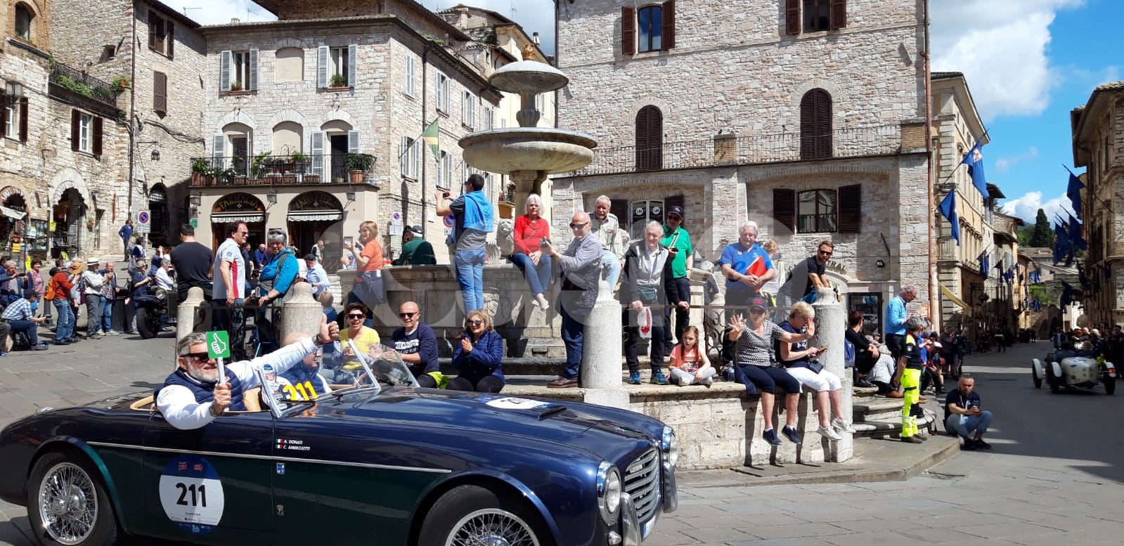 Dopo il passaggio delle Mille Miglia 2019 ad Assisi – una sfilata nel centro storico, tra cattedrale di San Rufino e Piazza del Comune – le auto sono arrivate a Santa Maria degli Angeli per il controllo timbro. Tanti gli appassionati, grandi e piccini, dislocati dietro le transenne lungo il percorso, per assistere alla parata di auto, di lusso e d’epoca. E i piloti hanno risposto, in un caso fermandosi persino a fare l’aperitivo (continua dopo il video)