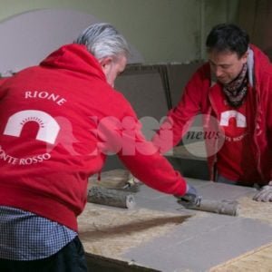 Poi, nello speciale Palio del Cupolone 2018, il Rione Fornaci capitanato da Moreno Massucci: “All’interno del nostro rione ci sono dei ruoli ben precisi, la collaborazione sinergica fra i vari settori per noi è fondamentale: un grazie sentito ad ogni responsabile di settore. I nostri tesserati sono 300, quest’anno scenderanno in piazza circa 140 costumanti che parteciperanno al corteo storico, nello spettacolo saremo circa 60. Ci tengo tantissimo ai miei rionali – confessa Massucci ad AssisiNews – con ognuno di loro abbiamo realizzato la nostra festa, insieme abbiamo lavorato alla sceneggiatura delle scene scegliendo un tema particolarmente difficile e complesso che è la letteratura italiana dell’800, individuando personaggi che in quel periodo hanno interagito con il nostro borgo angolano. A ciò abbiamo legato una movimentazione, una scenografia che tanti scopriranno nella piazza”. Per il Palio del Cupolone 2018 il Rione Fornaci punta anche sui giochi “un altro elemento importante – dice Moreno Massucci – con i nostri responsabili che stanno dando il massimo da tantissimo tempo per fare bene, duri gli allenamenti e l’organizzazione in ogni momento da vivere in sede e non solo. Ogni sera, ormai siamo agli sgoccioli ansiosi di dare vita al nostro spettacolo, tutti i nostri rionali partecipano con grande entusiasmo. Tutte le sere ci vediamo: una sera ci sono le prove dei cortei, un’altra delle scene, poi i vari giochi, c’è grande entusiasmo e ci rimane soltanto una cosa, vincere! Perché, assolutamente, l’obiettivo primario deve essere puntare alla vittoria. Ognuno di noi deve divertirsi e stare bene insieme, ma l’obiettivo è naturalmente vincere. Spero che i giudici del Palio del Cupolone 2018 possano esprimere un giudizio in maniera assolutamente imparziale, valutando tutte le nostre prerogative e capacità per quello che porteremo in piazza e valutando accuratamente corteo, scene, recitazione, comportamento, storia e tutto ciò che gli compete. I giochi sono legati a noi stessi, alle nostre forze, a ciò che succederà, siamo pronti a dare il meglio”. “Il Rione Fornaci è aperto a tutti – fanno eco Roberto Falcinelli e Corrado Cannelli anch’essi fra i vertici rionali – speriamo che ciò che porteremo in piazza piacerà alla gente. Il segreto di questa festa è far divertire tutti gli angelani, il segreto del nostro rione è far divertire tutti i rionali. Siamo tranquilli, comunque andrà ci divertiremo, ma ripeto, al Rione Fornaci auguro soltanto una cosa – suona la carica concludendo il Capitano Moreno Massucci – una grande vittoria!”.