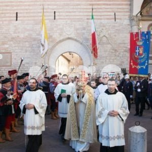 “È una regione che ci ha trasmesso l’aspirazione a costruire uno Stato unitario e laico – sottolinea Padre Mauro Gambetti, Custode del Sacro Convento, che ha accolto le delegazioni della Regione e le autorità civili e religiose nell’ambito delle celebrazioni odierne di San Francesco 2016 – e una Nazione è unita se le persone si incontrano: è questo che ci insegna San Francesco, uomo di pace e dialogo”. Oggi, nel Refettorio del Sacro Convento, saranno presenti anche 20 profughi a rappresentare il grido di umanità sofferente che chiede di essere accanto a loro.