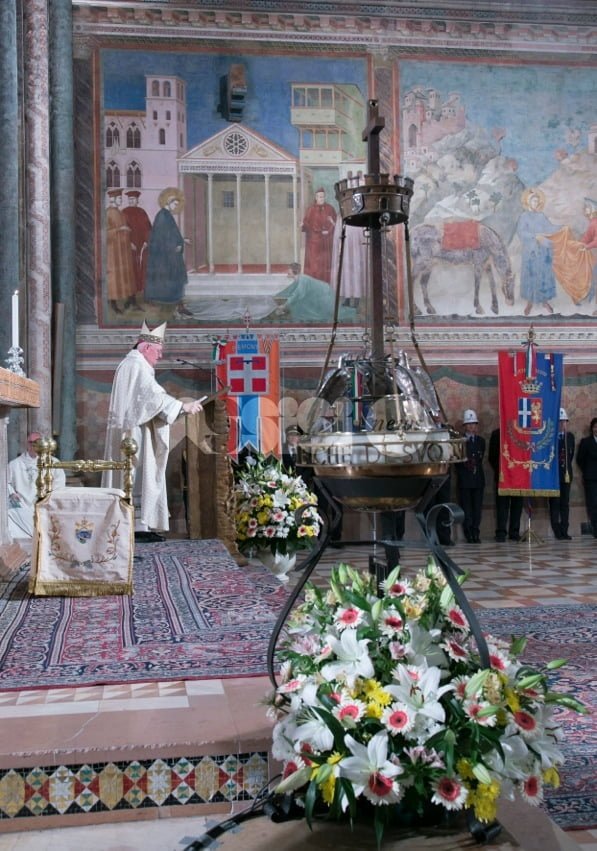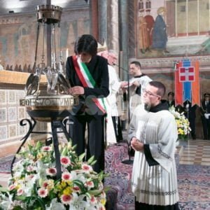 San Francesco 2016, è il giorno della Festa nella Basilica Superiore di San Francesco: quest’anno è stato il Piemonte, guidato da Sergio Chiamparino e dal sindaco di Torino Chiara Appendino, a donare l’olio per alimentare la lampada sulla tomba del Poverello. Ad accendere la lampada votiva dei Comuni Italiani, il sindaco torinese; dopo la messa, gli interventi del sindaco di Assisi Stefania Proietti, di padre Marco Tasca, Ministro Generale dei Frati Minori Conventuali, del vescovo di Assisi Domenico Sorrentino e, del ministro Gian Luca Galletti e di Chiamparino.
