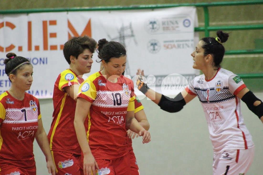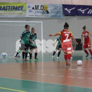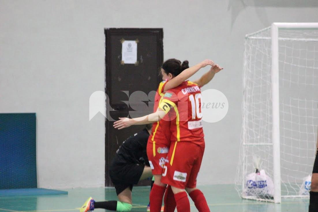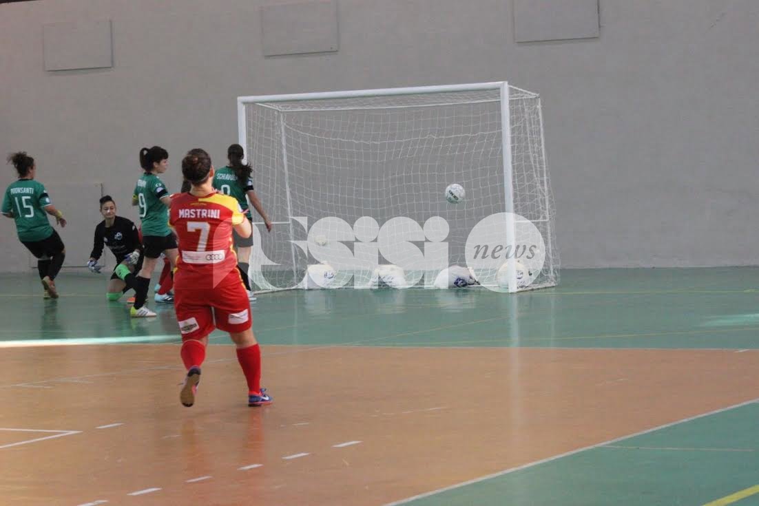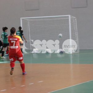 CRONACA: Partita sottotono per l’Angelana C5 femminile di mister Pierini in avvio. La prima occasione arriva al 5’, palo di Colucci. Al 7’ Conti sostituisce Donati che ha subito un’occasione, all’8’ Sileno ruba palla a Claudia Carnevali e realizza un gol sola contro il portiere, padrone di casa avanti 1-0. Entra Mastrini per Colucci al 9’ e al 12’ il pari giallorosso lo segna Conti su palla defilata di Carnevali. Tante le occasioni per le ospiti smorzate da una Graziana Iunco al top. Primo tempo, 1-1.