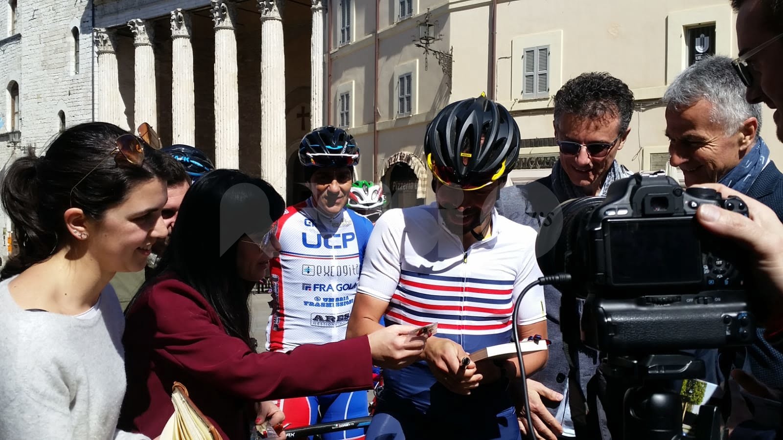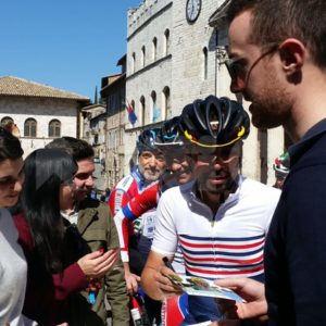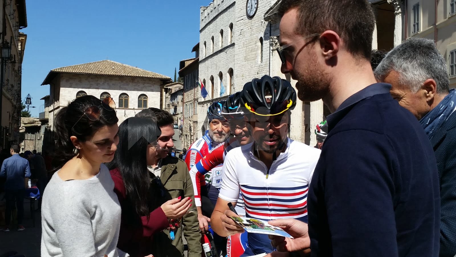 Di Felice è arrivato ad Assisi insieme ad un gruppo di ciclisti del territorio che hanno accolto il campione e e percorso insieme a lui gli ultimi chilometri della tappa fino all’arrivo in Piazza del Comune. È seguito, nella Sala della Conciliazione, l’incontro tra il campione, la cittadinanza e le associazioni sportive del territorio, incontro al quale è intervenuto anche il direttore Vivi Appennino Enrico Della Torre che presenterà il Piano di Sviluppo Sostenibile della Dorsale 2018-20.