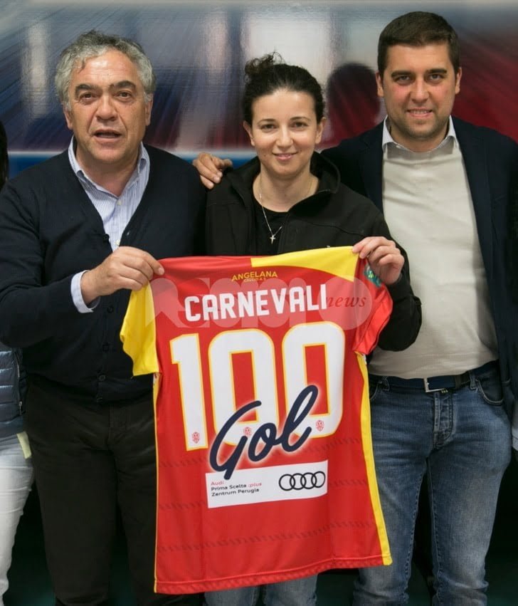 La calcettista romana, umbra di adozione, dallo scorso anno alla guida, in campo, della compagine giallorossa, è stata sempre parte fondamentale della stessa dal primo anno di nascita del club, con il quale ha raggiunto prestigiosi traguardi, tra cui due promozioni, una in Serie A2, una in Serie A, oltre ad un titolo di Coppa Italia a livello regionale umbro. Per la sua dedizione allo sport e l’impegno profuso, Claudia Carnevali è annoverata tra i migliori pivot italiani in attività. Nella stagione appena conclusa dall’Angelana calcio a 5 femminile, il capitano giallorosso ha realizzato ben 28 marcature, guadagnandosi un posto tra i tre migliori capocannonieri italiani di Serie A2, su un totale di 49 squadre di categoria raggruppate nei rispettivi gironi nazionali.