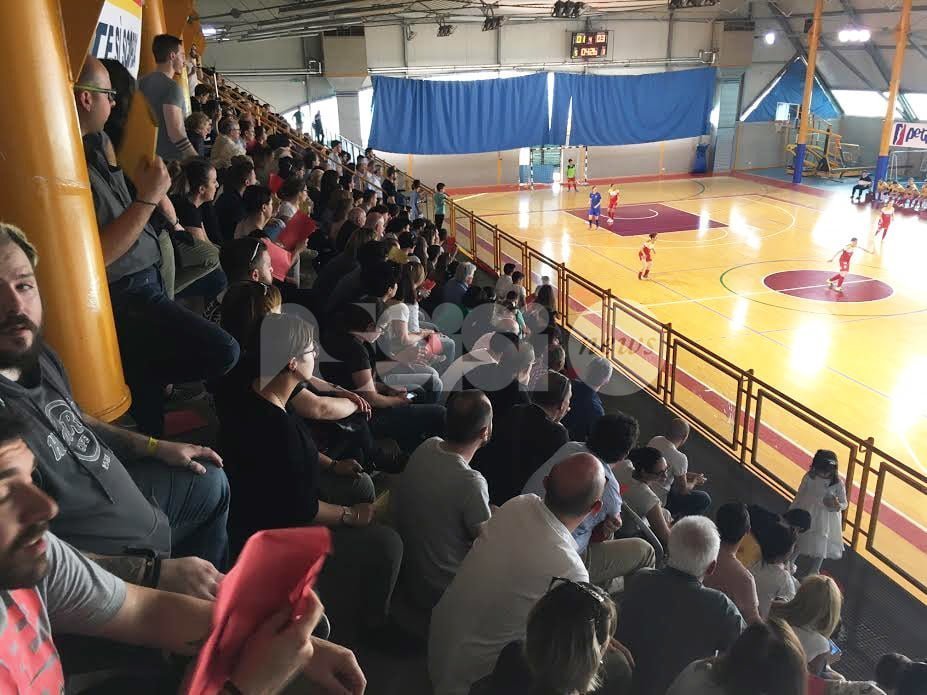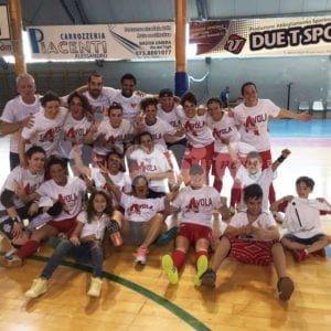 LA GIORNATA: In un PalaItis gremito, le ragazze di mister Simone Pierini sudano più del previsto contro avversarie toste e mai dome, costrette alla fine dei 40 minuti regolamentari ai calci di rigore, dopo una gara dai due volti. Gran galà di spettatori per un ritorno davvero tanto atteso al palasport di Santa Maria, una vera “bolgia”. Primo tempo accorto che si chiude 0-0, con l’Angelana Calcio a 5 femminile che pensa anche alla larga vittoria ottenuta all’andata (2-5). Ma le reti rimangono inviolate. Secondo tempo di tutt’altra pasta ospite e Flaminia Fano, che non ha più nulla da perdere, subito in vantaggio 1-0. Poi il raddoppio, lo 0-3 e tutto da rifare. Pordenoni infortunata lascia il campo, in porta va Colucci. Supplementari. Mastrini fa esplodere il PalaItis, gran gol, 1-3. Ma le ospiti non demordono e a 2 minuti dal termine fissano il punteggio sull’1-4. Si va ai rigori: per l’Angelana segnano Catamerò, Colucci e Donati. Errore ospite al 6º tiro dal dischetto: Angelana promossa in serie A Elite fra la grande festa giallorossa.