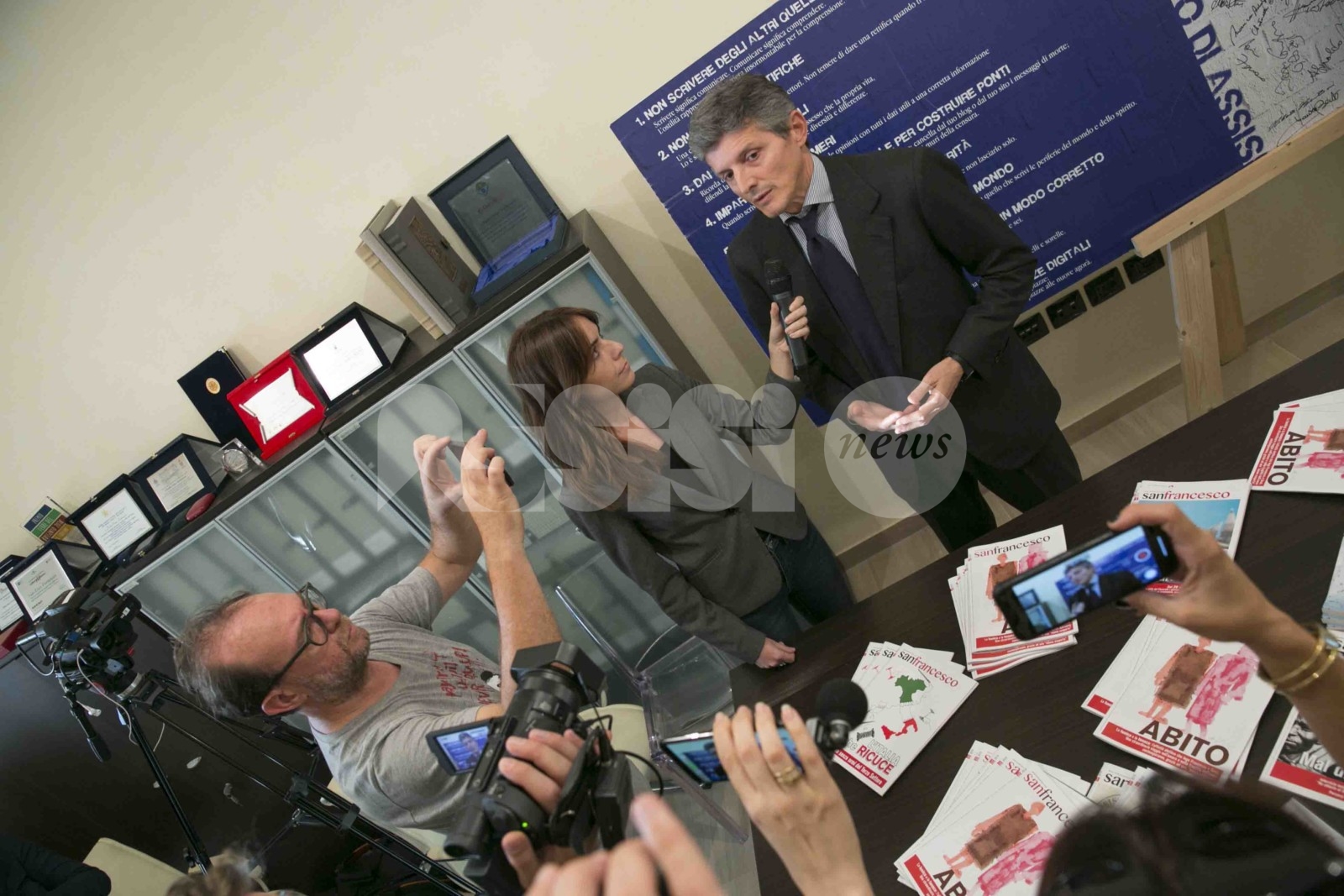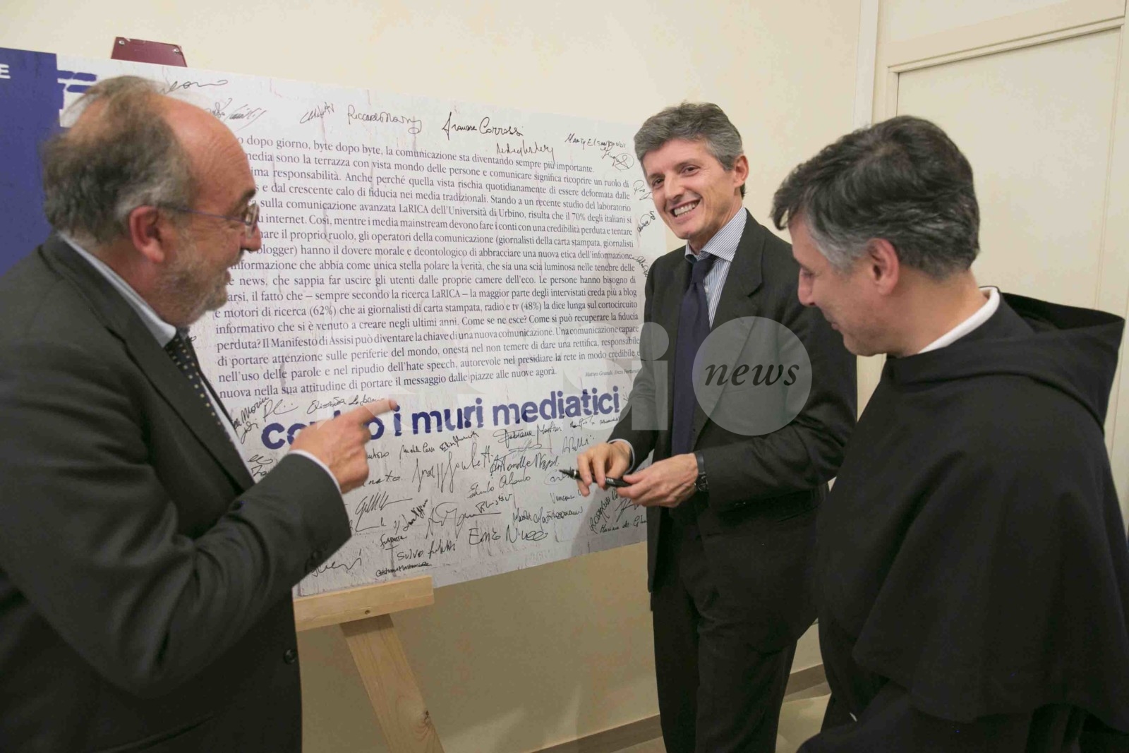 È ad Assisi che lo scorso maggio è partito l’appello a far crollare ogni muro mediatico, è qui che la “Carta di Assisi” è stata sottoscritta. Ieri (22 ottobre 2019, ndr) il sottosegretario con delega all’editoria Andrea Martella, arrivato nella città di San Francesco, ribadisce l’importanza di quel documento, nato per sostenere la fratellanza universale contro l’odio e dire a voce alta che “le parole non sono pietre”. Martella, accolto dal Custode del Sacro Convento, padre Mauro Gambetti, ha visitato la nostra redazione e dialogato con padre Enzo Fortunato, direttore della rivista “San Francesco”, e Beppe Giulietti, presidente della Federazione Nazionale della Stampa Italiana. “Ho trovato parole, valori, espressioni di una tale semplicità ma di una tale profondità che non posso esimermi”, dice il sottosegretario a proposito della Carta di Assisi. (Continua dopo il video)